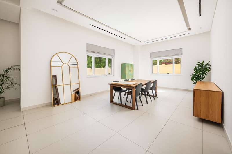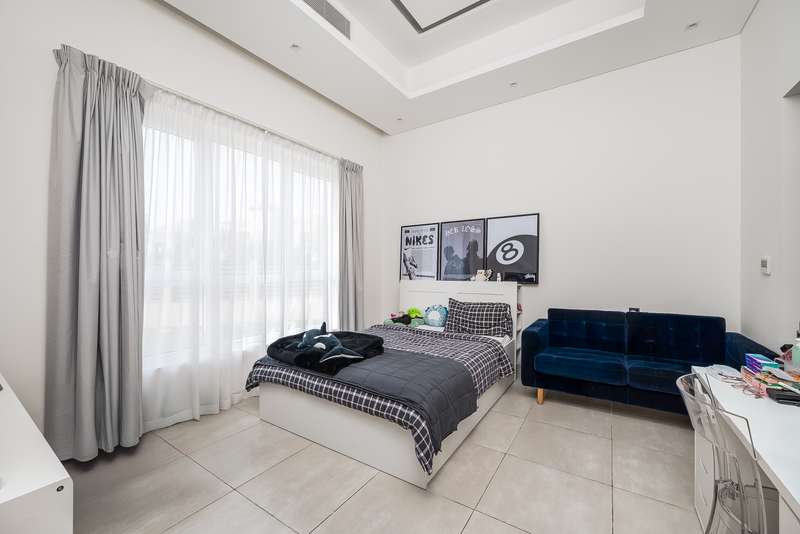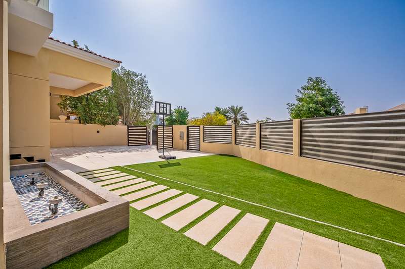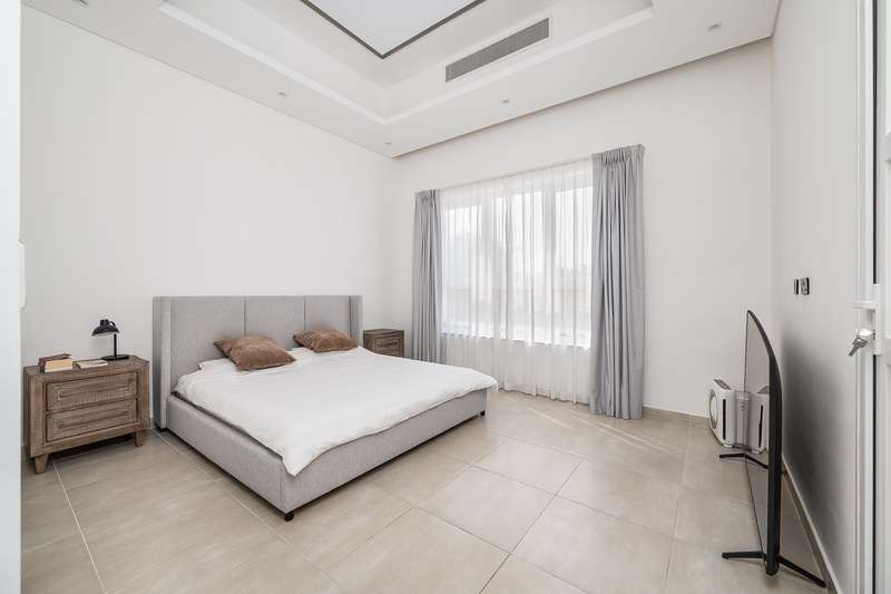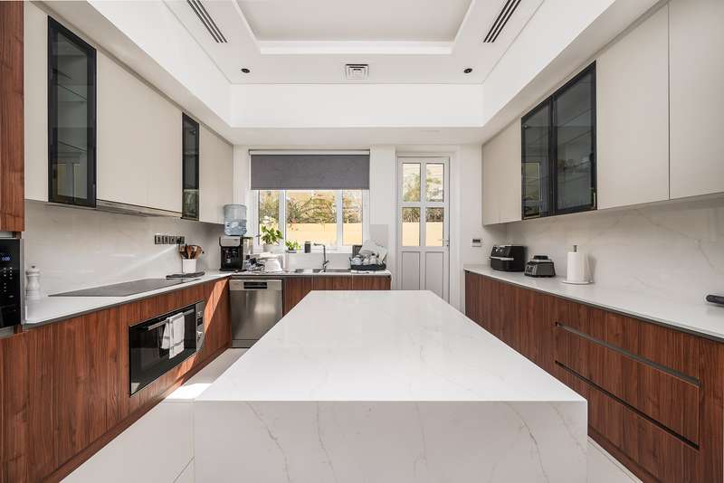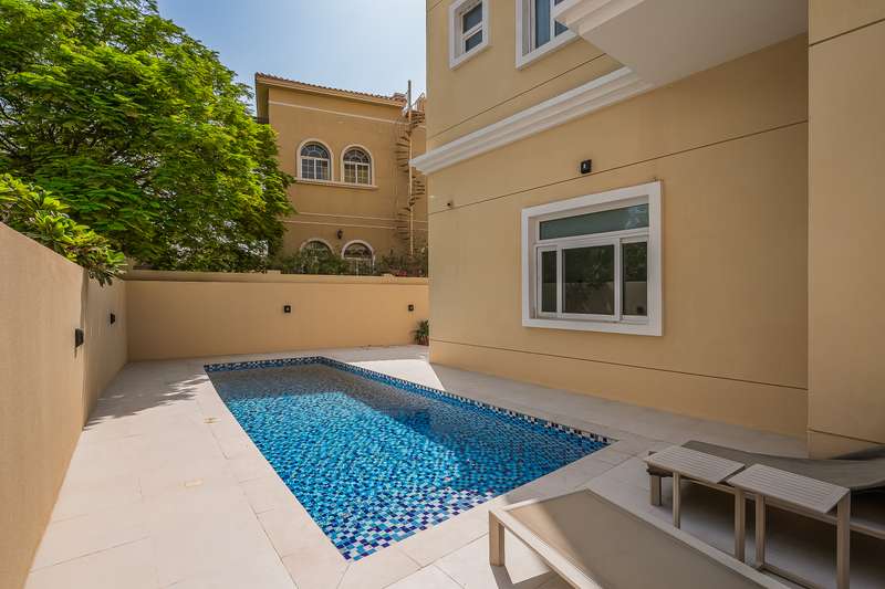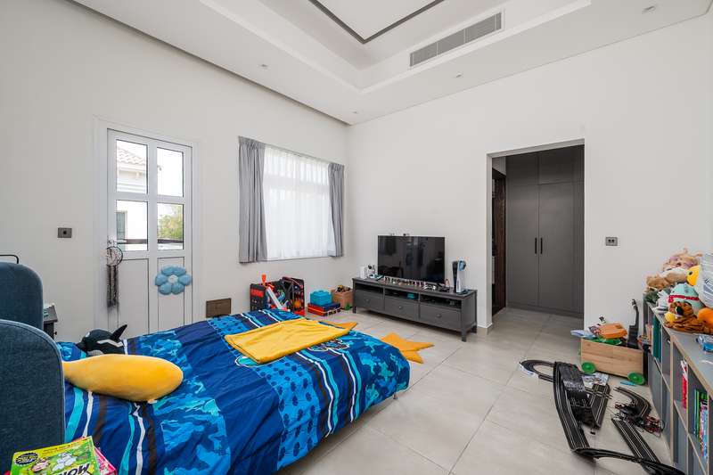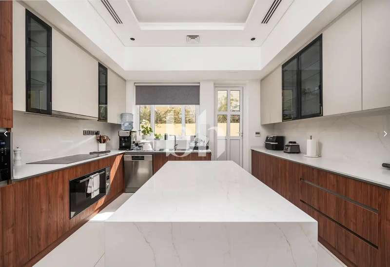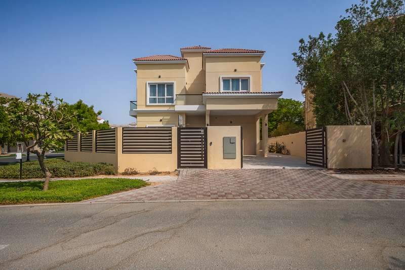 Betterhomes delighted to present this stunning 5-bedroom, custom-built corner villa located in the prestigious community of The Villa. Just one year old, this residence boasts exceptional construction quality, modern design, and an enviable position overlooking a lush green area in a peaceful and private setting. Property Highlights: Independent 5-bedroom villa -Built-Up Area: 4,500 sq.ft. -Plot Size: 6,874 sq.ft. -Bright and spacious living & dining areas with large windows for abundant natural light -The villa features a sleek modern kitchen with abundant storage, premium fitted appliances, and elegant white countertops. -The bathrooms are beautifully designed, showcasing a sophisticated blend of white and gray finishes, complemented by contemporary walk-in showers. -Guest bedroom on the ground floor with en-suite shower -Four generously sized bedrooms on the first floor, each with en-suite bathrooms -Separate maid’s room, laundry area, and powder room on the ground floor -Expansive plot with a private swimming pool -Vacant on transfer This immaculate home combines elegance, comfort, and functionality—perfect for families seeking a modern lifestyle in a serene community. Call today to arrange a private viewing of this exceptional property in The Villa.
