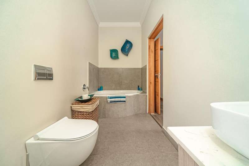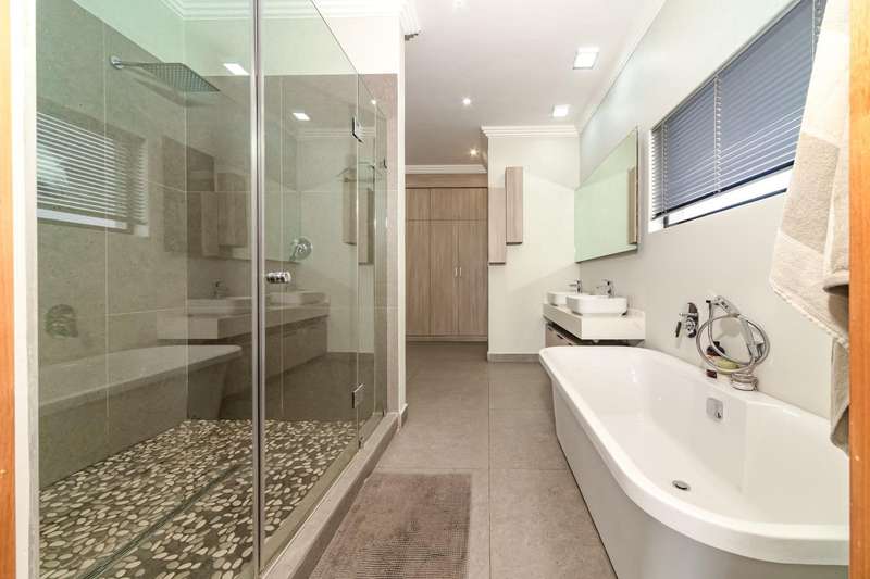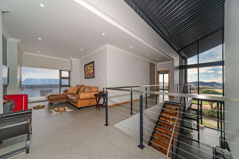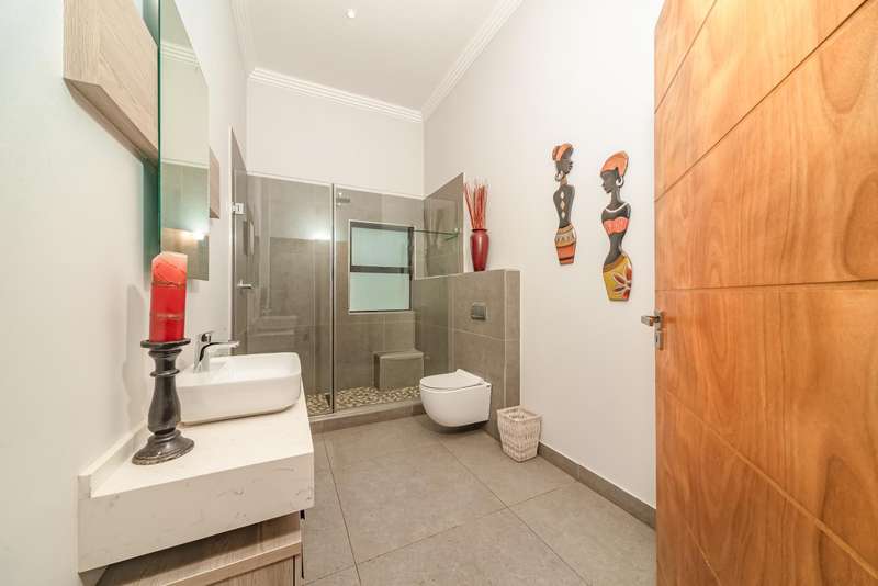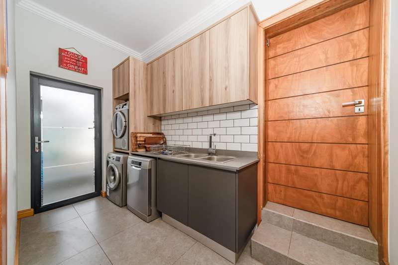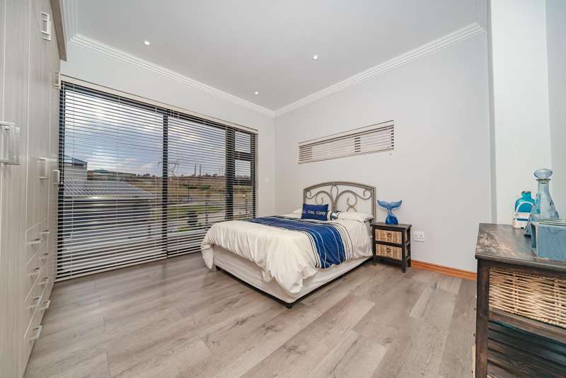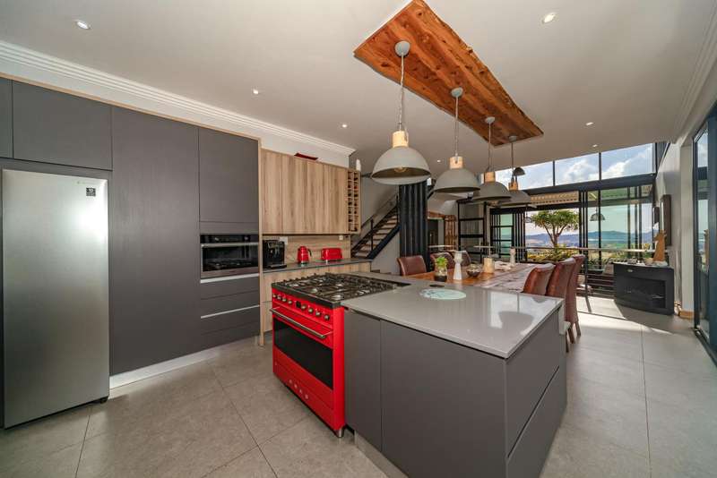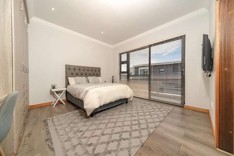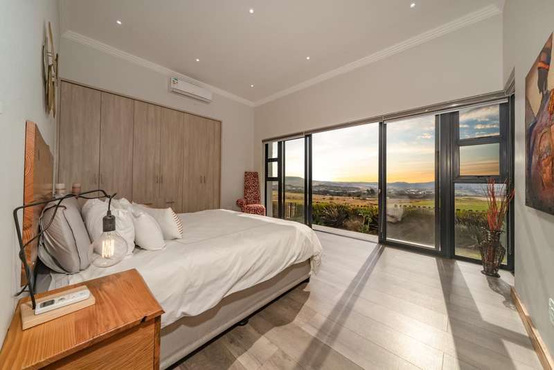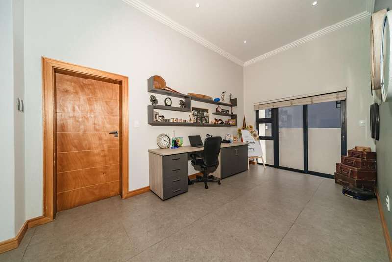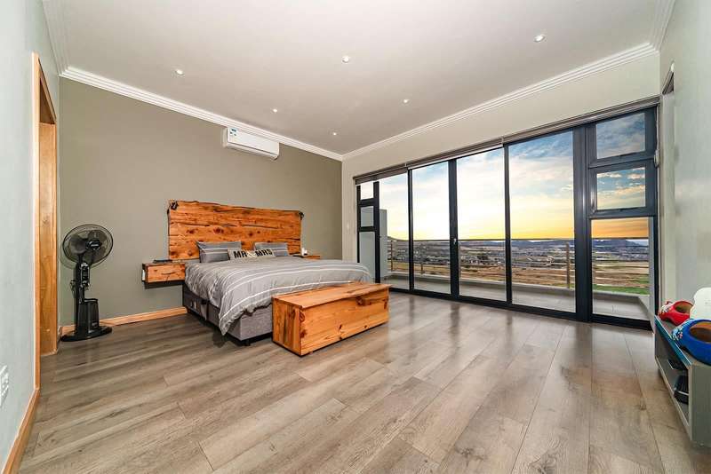 Positioned on one of Eye of Africa?ÇÖs most sought-after roads, Panorama Drive, this Niki De Sousa masterpiece commands uninterrupted vistas that stretch across the estate and beyond - even to the ever iconic Soweto Towers on a clear day. A statement in bold, contemporary architecture softened by warm modern-country undertones, this 498sqm residence is defined by light, volume, and effortless flow. From the striking pivot door entry to the dramatic double-volume lounge with 8-metre ceilings, every space has been curated for impact. The gourmet kitchen anchors the home with bespoke cabinetry, a feature island, and premium appliances, seamlessly connecting to the dining and entertainment areas. Stacking sliders invite the outdoors in, leading to a manicured garden, heat-pump pool, and covered patio with built-in braai - the perfect stage for golden sunsets over the 8th and 11th fairways. Four bedrooms, four bathrooms, and a serene pajama lounge create private retreats, while triple garaging, solar power, and E-glass windows ensure modern comfort. Set on a 798sqm stand, this is more than a home - it is an entertainer?ÇÖs dream and a lifestyle investment in one of South Africa?ÇÖs most prestigious estates.