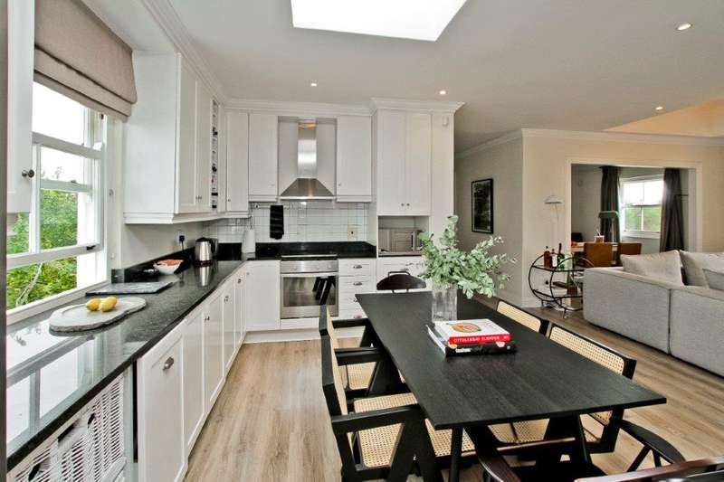 Serious seller, inviting offers from R3,800,000! Classical clean lines, ambience and elegance abound in this magnificent 155sqm north facing top floor simplex apartment. One of a kind complex, built like no other using quality materials to create an exceptional piece of architecture renowned for its Georgian design, generous accommodation, wide passageways and superb style. Only 2 units per floor. Privacy & security second to none, perfectly located between the business hubs of Sandton, Melrose Arch, Rosebank and Hyde Park, a 2 minute drive to the M1. An excellent investment with tenant in place or ideal lock up and go. A loadshedding solution is underway and will be implemented in due course. Light & bright open plan living & dining areas with exposed trusses, skylights and a wood burning fireplace. Modern Open plan kitchen with granite tops, fitted blinds & space for at least 2 appliances. The open plan living areas lead out to a north facing balcony with views. 2 north facing bedrooms, 2 full bathrooms (main en suite), plus a study or 3rd north facing bed, + separate guest cloakroom. Wooden flooring throughout, gorgeous fireplace in the lounge, & sash windows throughout. Superb location close to all amenities; Gautrain, Sandton, Hyde Park Corner, Melrose Arch & Fricker Road Business District. Exceptionally well run complex with healthy financials & excellent 24hr manned security. 2 Basement parking bays + visitors parking in the complex. Book your private viewing today!