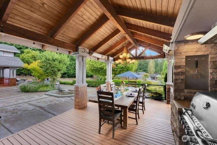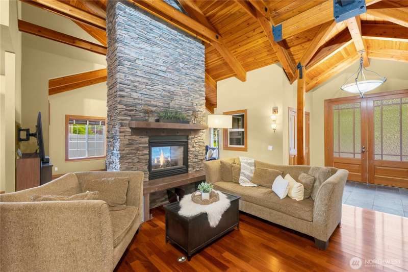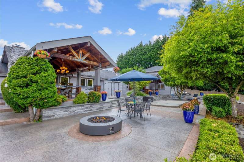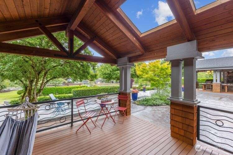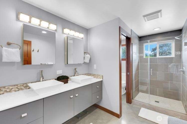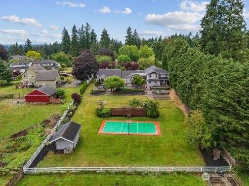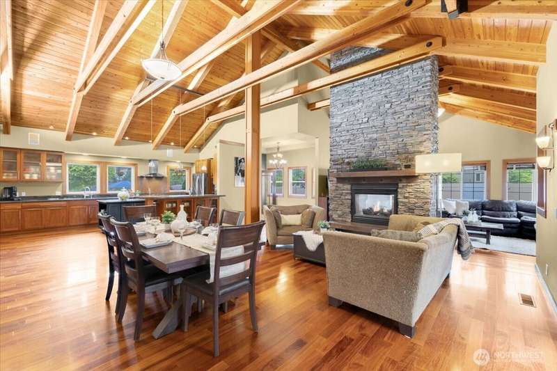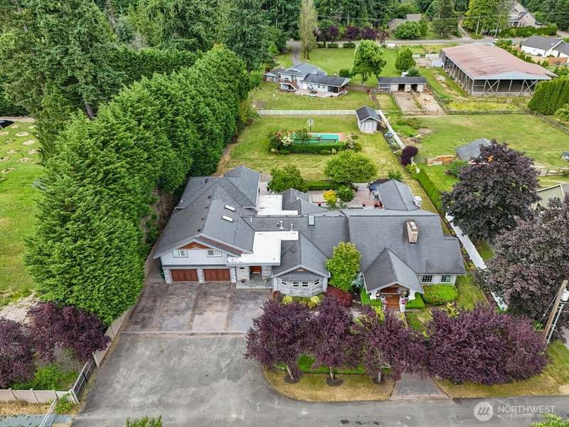 Price just lowered! Hollywood Hill Northwest Contemporary estate on a shy acre with no HOA. Over 5,250 sq ft of light-filled living, expanded & remodeled in 2018. Vaulted wood-beamed ceilings, polished concrete floors, and a dual-sided fireplace anchoring the open-concept layout. Includes 5 bedrooms, 3.5 baths, two main-level primary suites, & laundry for convenient living. Smart systems: 3-zone HVAC, RF lighting, built-in speaker system, & generator. Resort-style outdoor living features lap pool, sport court, gas firepit, built-in BBQ, dual patios, and 4,500+ sq ft of stamped concrete. Detached insulated shed with power. Minutes to wineries, trails, and Eastside tech hubs. Northshore schools. A rare blend of space, systems, and setting.