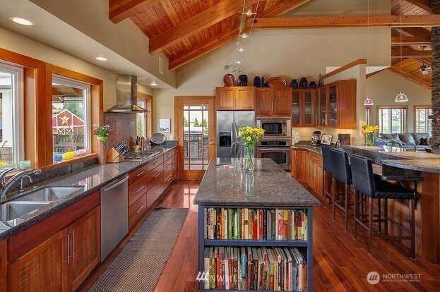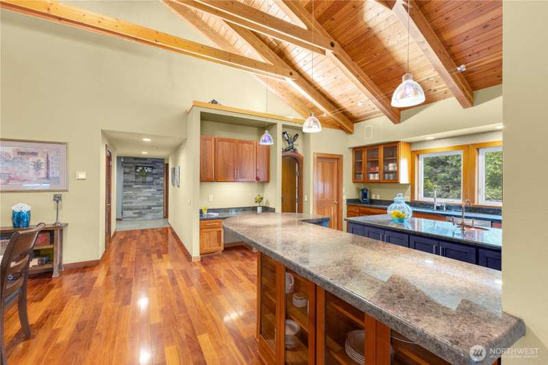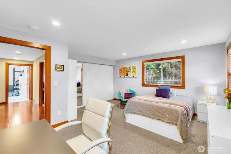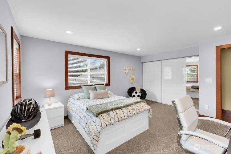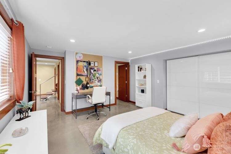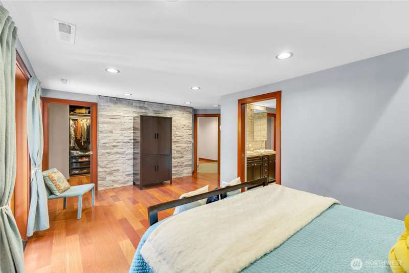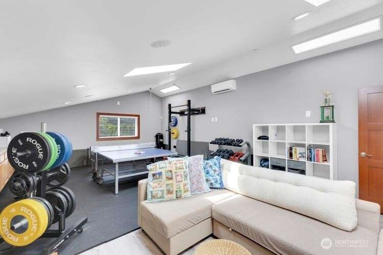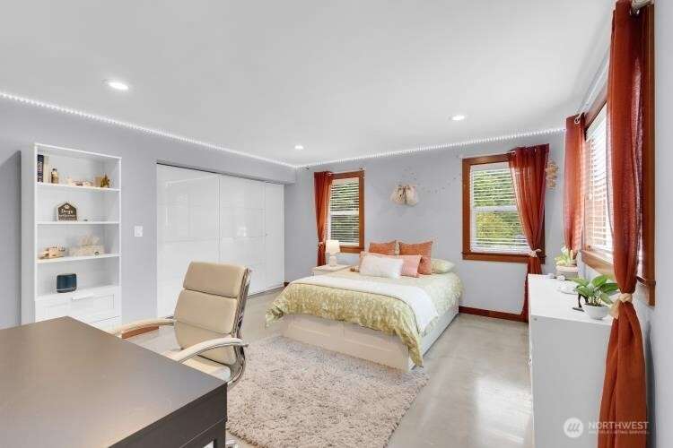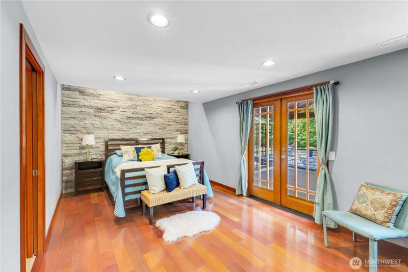 Price just lowered! Hollywood Hill Northwest Contemporary estate on a shy acre with no HOA. Over 5,250 sq ft of light-filled living, expanded & remodeled in 2018. Vaulted wood-beamed ceilings, polished concrete floors, and a dual-sided fireplace anchoring the open-concept layout. Includes 5 bedrooms, 3.5 baths, two main-level primary suites, & laundry for convenient living. Smart systems: 3-zone HVAC, RF lighting, built-in speaker system, & generator. Resort-style outdoor living features lap pool, sport court, gas firepit, built-in BBQ, dual patios, and 4,500+ sq ft of stamped concrete. Detached insulated shed with power. Minutes to wineries, trails, and Eastside tech hubs. Northshore schools. A rare blend of space, systems, and setting.