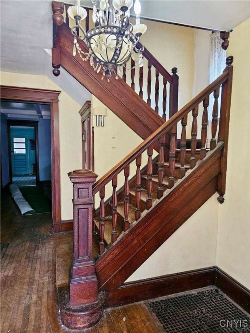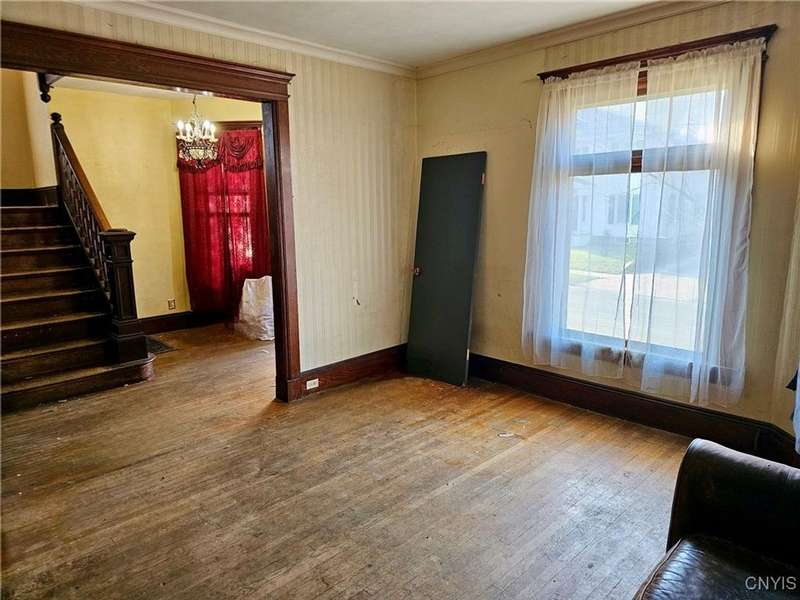 PRICED TO SELL! This spacious Victorian home is brimming with potential and ready to be restored to its original charm. Ideally located in the heart of Auburn?just one block from Genesee Street, Wegmans, the YMCA, county offices, shops, and restaurants?this property offers convenience and classic character.Featuring 2,180 sq. ft. of living space, the home showcases original woodwork, hardwood floors throughout, a grand staircase, and a beautiful coffered ceiling. The first floor includes a formal dining room, two living rooms, a large kitchen, and a full bath. Upstairs, you'll find four generous bedrooms and another full bath, with a walk-up attic offering potential for even more living space.Enjoy both front and back enclosed porches and a new steel roof. While the exterior needs significant restoration, this home presents an incredible opportunity to bring a timeless Victorian back to life.