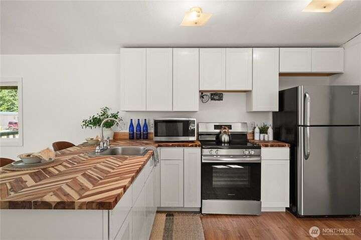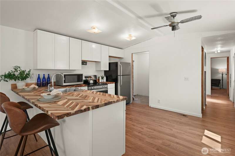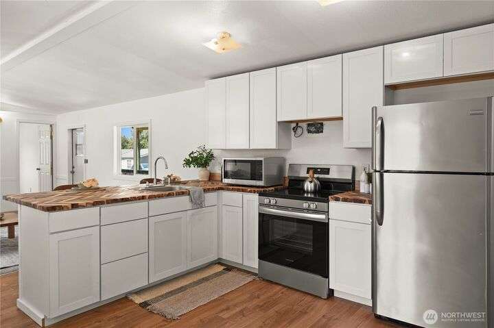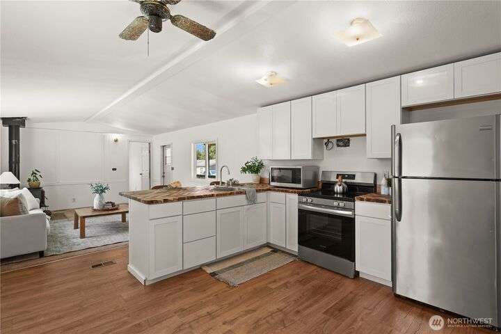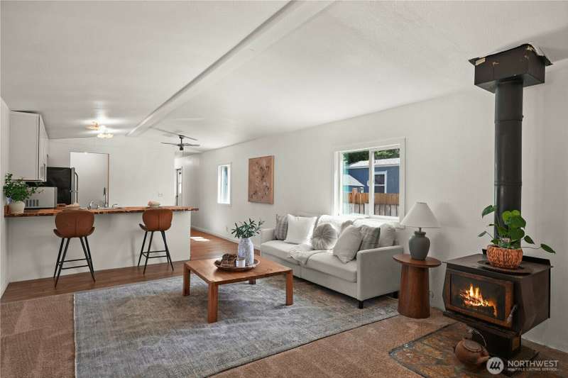 Check out this awesome home with over $20K in Upgrades! Enjoy peace of mind with new counters, appliances, plumbing, water heater, and windows. Fresh interior paint, new flooring, and renovated bathroom add modern comfort and style. Cozy up by the wood stove and settle into a move-in ready home that blends value, charm, and convenience! Close to freeways, shopping, restaurants and award-winning schools! Lot Rent= $825/month