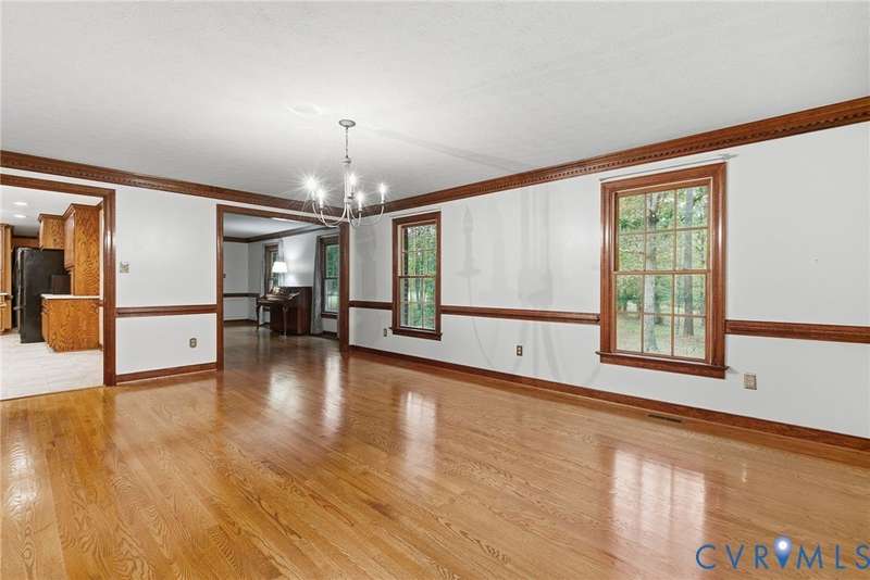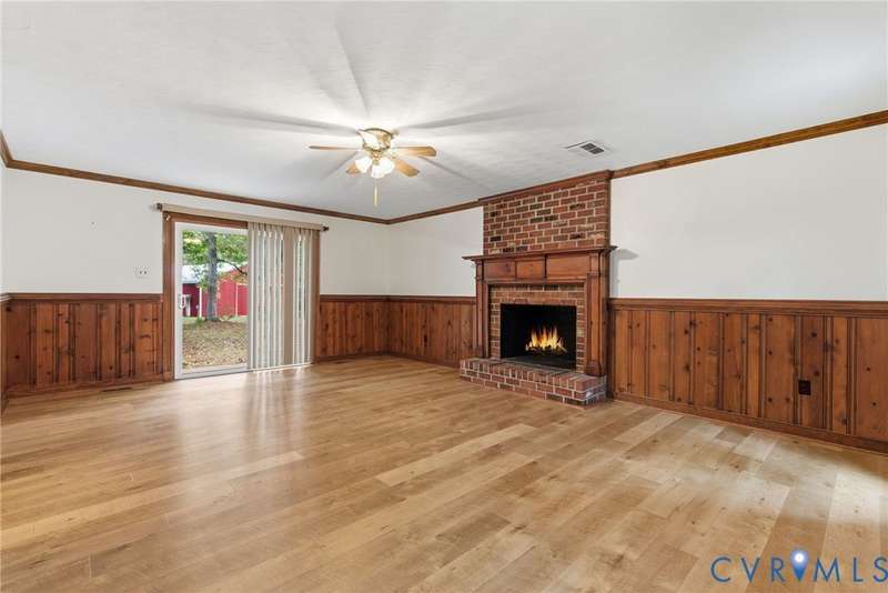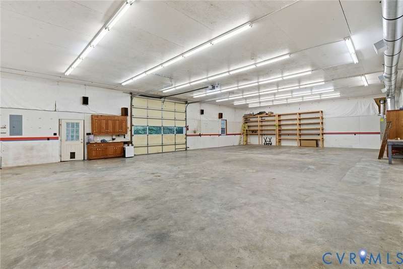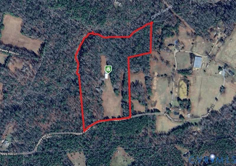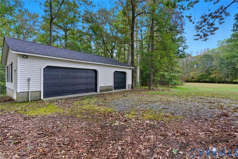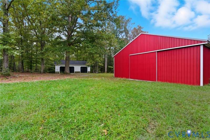 Welcome home to your private oasis on 20.5 acres in beautiful Hanover County! This dream property offers the perfect balance of open fields, hardwoods, and a peaceful creek, ideal for horses, livestock, hunting, or simply relaxing in nature. Step inside through the grand foyer and into the elegant formal living room featuring hardwood floors, detailed molding, and classic box trim. The spacious dining room continues with wood floors and easily accommodates large family gatherings. The remodeled kitchen is a chef's delight with solid surface counters, custom cabinetry, tile backsplash, a Vent-A-Hood exhaust system, and a cozy morning room. Off the kitchen, an impressive pantry features additional cabinetry, counter space, and a standup freezer. The downstairs laundry room includes cabinetry and access to the back porch. The family room boasts new laminate wood flooring and a large wood-burning fireplace, perfect for cozy nights in. Upstairs, you'll find three spacious bedrooms and a versatile flex room. The primary suite showcases hardwood flooring, a coffered ceiling, recessed lighting, dual walk-in closets, and a luxurious ensuite bath with a jetted tub, standalone shower, dual vanity, and linen closet. Step outside to enjoy the aggregate patio-ideal for a firepit and Adirondack chairs. The property also includes two incredible outbuildings: a 3+ car detached garage for mechanics or hobbyists, and a 40x64 (2,560 sqft) heated and cooled building with a concrete floor, two 12x14 oversized doors, and water access-offering endless possibilities. A large lean-to attached to this building is perfect for farm equipment or conversion to a horse stable. The home and garage roofs are brand new (8/25) with transferable warranties, and both HVAC units were replaced in 2024. Come experience the peace and possibilities-schedule your showing today and make Happy Hill your happy place!