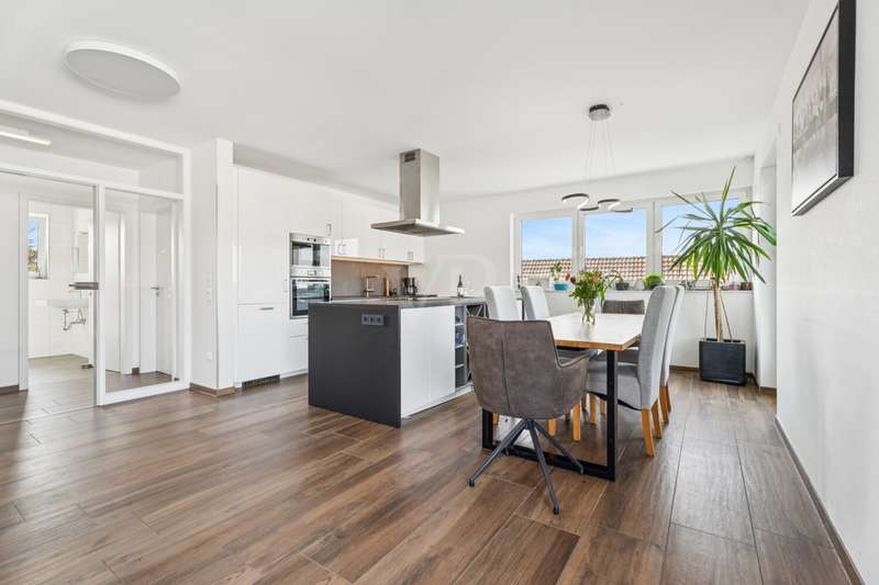 Are you looking for a speedy and relaxed move without extensive conversion work? This penthouse apartment from 2021, which is ready to move into at short notice, combines stylish architecture with contemporary living comfort and is also in a sought-after location in the heart of Hörstel. On a generous living space of approx. 140 m² including the roof terrace, you can enjoy a living experience in a class of its own. Even the arrival is something special: the elevator takes you directly to your apartment and opens up a view of a light-flooded and well thought-out room concept. The centerpiece is the elegant living and dining area with an open fitted kitchen - a place where interactive cooking and socializing with loved ones become unforgettable moments. A large window front invites the sun in at all times, while the external blinds provide protection when required. From here, you can access the fantastic roof terrace, a wonderful retreat above the rooftops of the city. The master bedroom with its own dressing room is also a highlight. The space is complemented by an office, a bright children's room, two tasteful bathrooms, a practical utility room and a checkroom area. The modern design and high-quality furnishings create an atmosphere that perfectly combines style and comfort. Centrally located, you live right in the middle of the action here, but can also enjoy the privacy of a penthouse apartment to the full. Two parking spaces are also available and complete the offer of this charming property. Come and see the special flair for yourself at your next viewing! Have we piqued your interest? We look forward to hearing from you.
