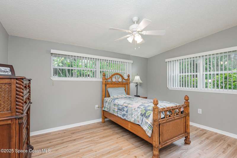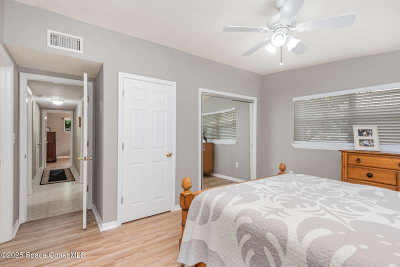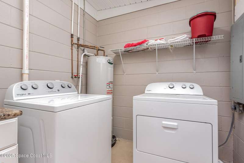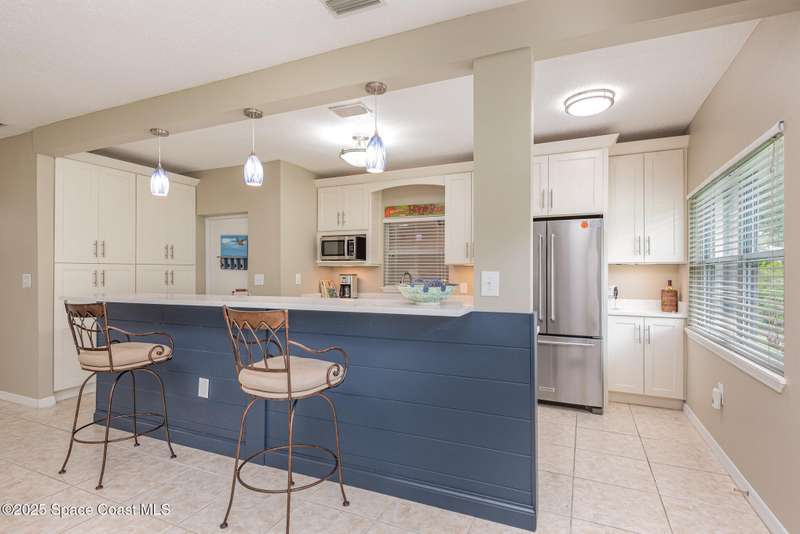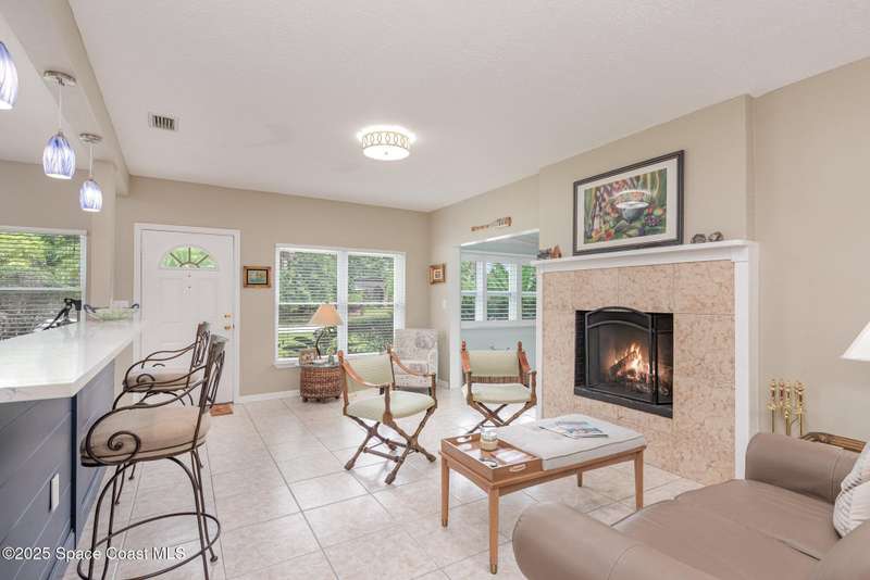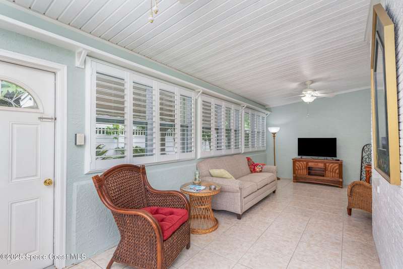 This beautiful 3-bedroom, 2-bathroom home in the historic Rockledge District is a stunning blend of classic charm and modern updates. The property has been meticulously maintained and recently upgraded, offering a truly turn-key experience. Inside, you'll find a light-filled, open space with 8'6'' ceilings. The custom-designed kitchen is a highlight, featuring new KitchenAid appliances, soft-pull cabinetry, and elegant Cambria quartz countertops. It also includes a built-in, two-zone wine refrigerator, perfect for entertaining. This home's infrastructure has been completely updated for peace of mind, with newer plumbing, electrical, and HVAC systems. The double-membrane metal roof, double-paned windows, and hurricane accordion shutters on all windows provide excellent storm protection, complemented by a whole-house Generac generator. The interior features fresh paint, luxury vinyl plank and tile flooring, and quality window treatments throughout. Other amenities include a wood-burning fireplace in the family room and a new washer and dryer. The private backyard is an oasis of tranquility, with beautifully landscaped gardens and an air-conditioned workshop, all enclosed by a white vinyl fence. An irrigation system for both the front and back yards uses well water, making maintenance easy and affordable. Located just one block from the Indian River, you can easily walk to the city dock for scenic views or a short bike ride to downtown Cocoa Village for dining and boutique shops. This property is a must-see.