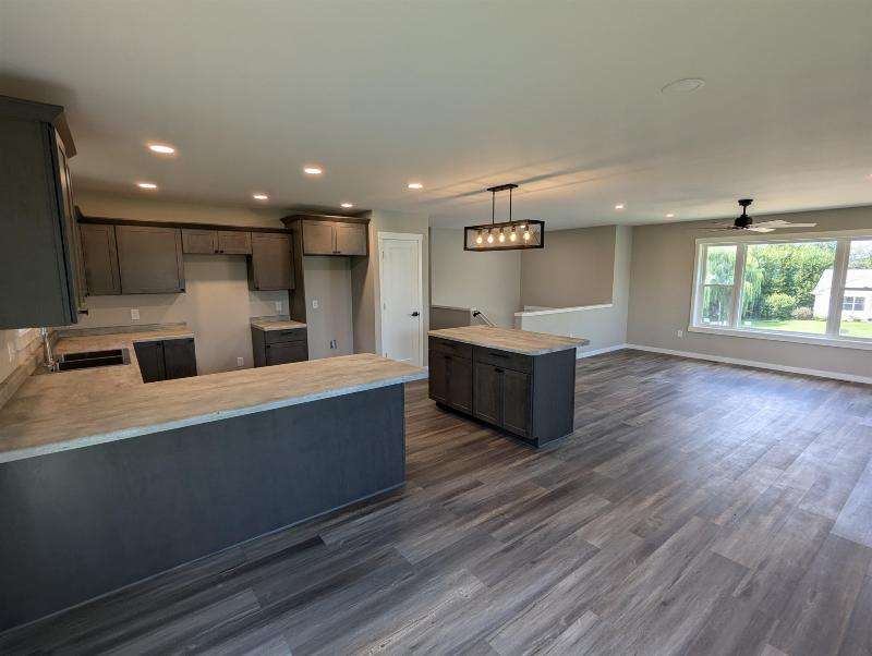 A very nice newly constructed raised ranch home, 1488 sq ft with an under-home 2-stall garage. The lower level rec room is ready for completion with 9 ft ceilings, a stubbed-in bath and addl storage space. Very attractive open floor plan with a kitchen bar and island. Excellent storage throughout this home. Hard surface flooring, main floor laundry, garage floor drain and concrete patio off of the patio doors in the dining room. Full concrete driveway and front steps leading to a fabulous front entrance of this home. Located in the lower taxed Town of baraboo with Municipal sanitary system. Excellent quiet cul-de-sac location less than a mile from the entrance to Devils Lake State Park. Covenants and restrictions available in documents.