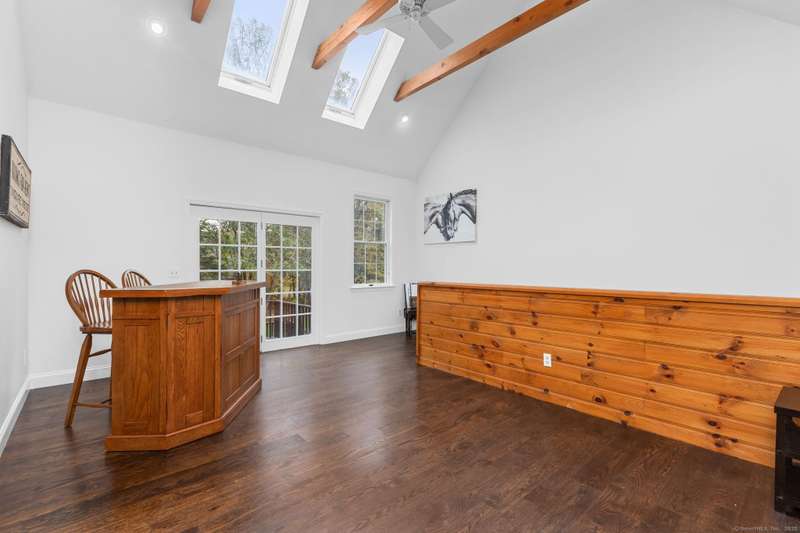 Welcome to 17 Curtis Drive, a serene and private retreat tucked away on a quiet cul-de-sac in the picturesque Town of Sherman, CT. This charming 3-bedroom, 3-bath home effortlessly combines rustic character with modern comfort, all set on a beautifully wooded 2.03-acre lot just minutes from Candlewood Lake and the New York border. Inside, the main level boasts soaring Cathedral Ceilings and an abundance of natural light streaming through Skylights and large Windows. The Family Room with cozy Fireplace and Full Bath is currently being used as a Main Level Bedroom. The open-concept Living Room and Dining area flows seamlessly into a spacious Kitchen featuring a center Island and French Doors that open to an expansive Deck, ideal for entertaining or relaxing in a peaceful natural setting. The 2nd level with a Juliet Balcony, holds the Primary Suite with vaulted ceilings and on-suite Bath along with two additional bedrooms a full Bathroom, Laundry room and access to a Loft. Additional highlights include hardwood flooring throughout and a full basement, perfect for storage. The two-car garage and generous driveway provide ample parking, all nestled at the end of a cul-de-sac in a tranquil, tree-lined neighborhood. Just 90 minutes from NYC. House can be Rented with or without Furnishings and for added space, with apartment above the Garage.