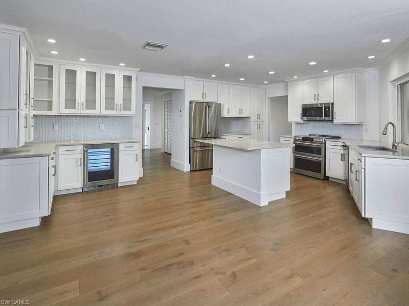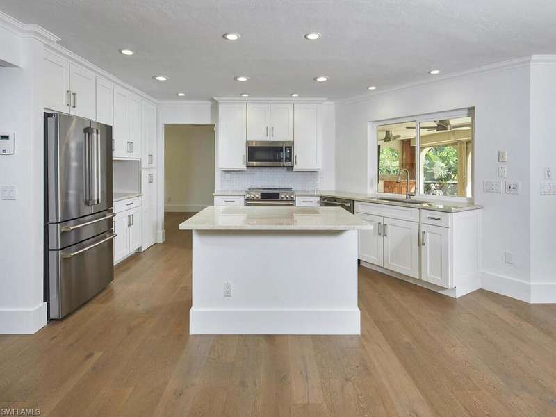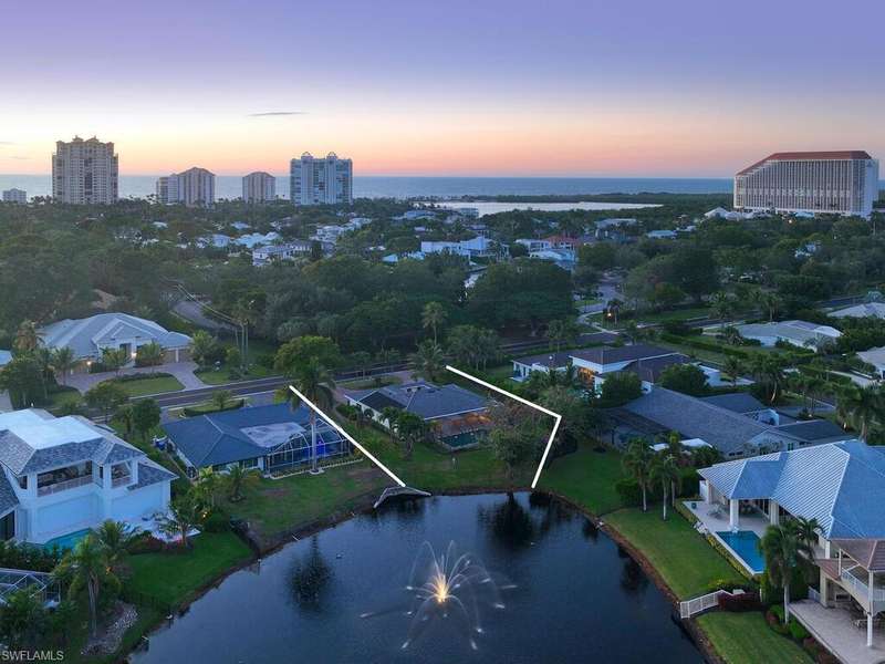 Coastal Charm Meets Park Shore Luxury! Discover the ultimate Naples lifestyle in this lakefront gem located in the prestigious Park Shore community just a short walk to the beach, Venetian Village, and Waterside Shops offering world-class shopping and dining.This beautifully maintained home features a remodeled kitchen and guest bath, new appliances, spacious living and family rooms, hardwood flooring, and impact-resistant windows and sliding doors throughout. The expansive covered lanai with a summer kitchen and screened pool area provides the perfect setting for entertaining, relaxing by the water, or enjoying the stunning sunrise and sunset views over the lake. Move right in, use as a luxury rental investment, or build your dream home on this highly sought-after lakefront lot priced at lot value for exceptional opportunity and upside potential. Park Shore residents enjoy access to the private Park Shore Beach and the ability to rent or purchase boat slips along Gulf Shore Blvd. Your