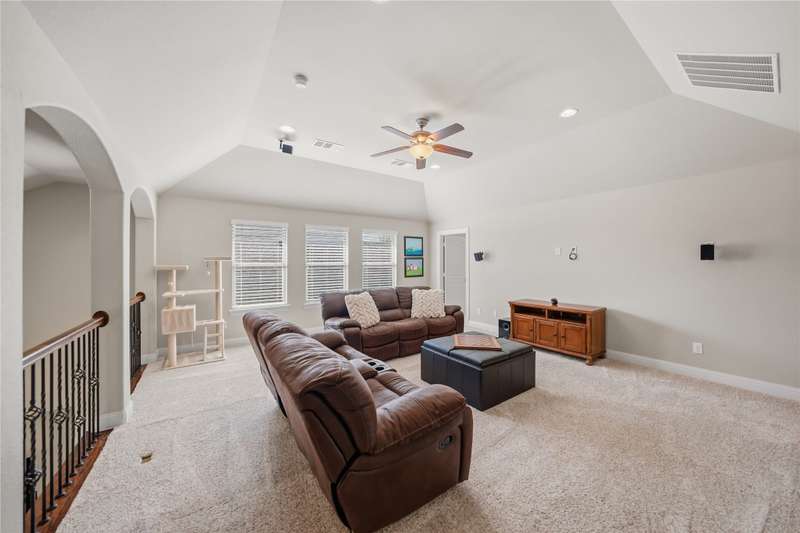 Welcome to 17 Lakes - This stunning 3,120 sq. ft. Coventry home offers exceptional blend of luxury functionality, & thoughtful design featuring 4 spacious bedrms, 3.5 baths, designated office, game rm, ex. bonus rm office nook, spacious laundry rm, ex. bump out space in garage, oversized covered Texas patio w built in BBQ grill, level 4 roof July 2024, custom built closets throughout, & upgraded carpet w extra soft padding. Soaring ceilings, cascading staircase, & niches will welcome you home. Chef's kitchen boasts lg granite island, gas cooktop, convection oven, ss Whirlpool appliances, new dishwasher, custom designed pantry, deep cabinet drawers for pans graciously opens up to breakfast & living rm w cozy brick & pristine wood mantle gas fireplace which even has a remote for quick ambiance. Check out the ex. space under the stairwell. Make your way through the bonus area featuring extra office nook w granite counter top & cabinetry. Pass through spacious laundry rm to your oversized private primary suite that leads you to the luxurious ensuite boasting soaking tub, separate shower w rain shower, separate vanities, & spacious Custom Designed Closet. Make your way upstairs to the amazing perfect living space that is a rare find in 17 Lakes. Game rm can be your media or flex rm & the built in media Bose surround sound system conveys.3 bedrms are oversized while 2 bedrms share a bathrm but have separate vanities, & the other bedrm has its own bath. You will fall in love w this floor plan. Enjoy outdoor living on the Texas-sized covered patio w built in brick BBQ grill, backing up to open space w no neighbors behind -the perfect setting for entertaining or relaxing. Located in the highly desirable 17 Lakes community, residents enjoy 2 pools, 2 playgrounds, splash pad, multiple catch release fishing lakes, walking trails that are surrounded by scenic sunsets & peaceful water views. This home is the perfect blend of luxury, location, & lifestyle-a MUST see in 17 Lakes!