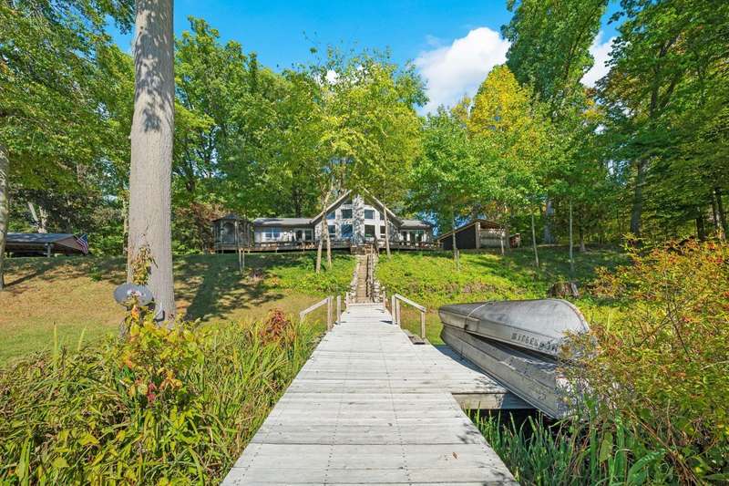 Shady Lake: A Unique Opportunity. Heres your chance to own a stunning 30+ acre private lake, 3 BR main home with full basement, plus a 2 BR guest home. As the centerpiece of this 110-acre estate, Shady Lake offers beauty, recreation, & tranquility. Sit on the dock and escape the everyday hustle & bustle. Swimming, fishing, & kayaking are just a few of the many pleasures to enjoy on this pristine, 60-foot deep, spring-fed gem. Surrounded by mature woodlands, this serene estate will energize your senses and uplift your spirit. Enjoy breathtaking views, local wildlife, & soothing sounds of birdsong from the spacious deck of your main residence. Invite friends & family to stay in your cozy guest cabin. Explore the expansive fields, woods, & ravines all year round. A nature lovers paradise! Located just 20 minutes from New Buffalo, 30 minutes from South Bend, & 90 minutes from Chicago, this is a unique blend of privacy and convenience. Dont miss your chance to own Shady Lake!