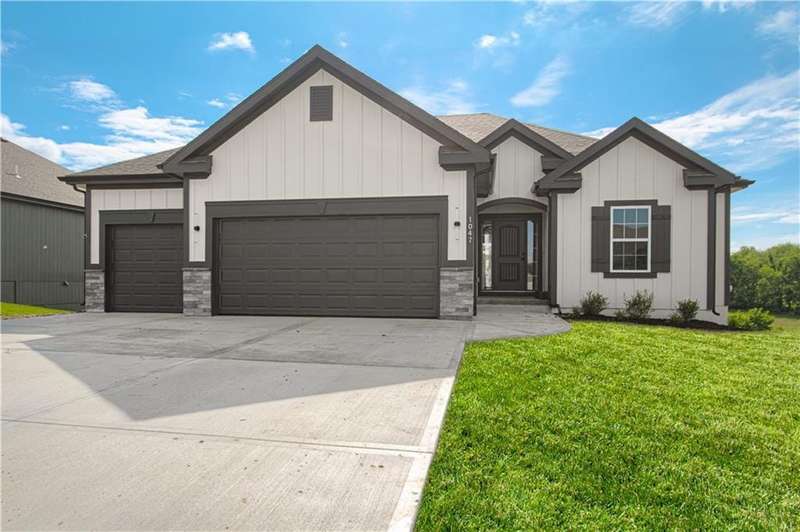 **NEW PRICE**REDUCED $10,000**COMPLETED AND MOVE-IN READY** The BENTLEY by Robertson Construction!! Super cute true Ranch with everything you need on one level! Sitting on a corner lot, The BENTLEY offers 3 bedrooms, 2.5 baths, 3 car Garage, 1654 sq. ft. on the Main Level and an Open Layout! Exceptional detail throughout including a Vaulted Ceiling, Custom Fireplace, Kitchen Island, Quartz Countertops, Walk-in Pantry, Stainless Appliances and Custom Built Cabinets with soft close doors. Hardwood Floor on the Main Living area. The Master Suite is private from the other bedrooms and has a Walk-in Closet with access to the Laundry Room. Covered Deck. Located in the highly-rated Kearney School District and close to local amenities.
