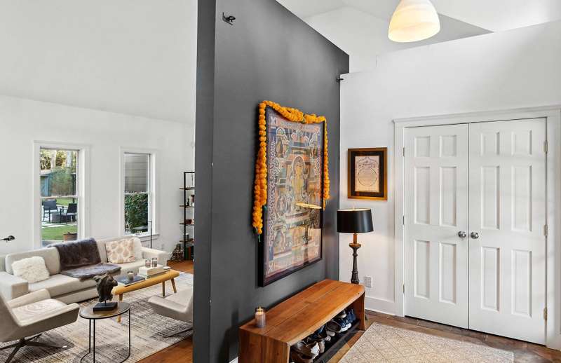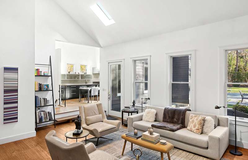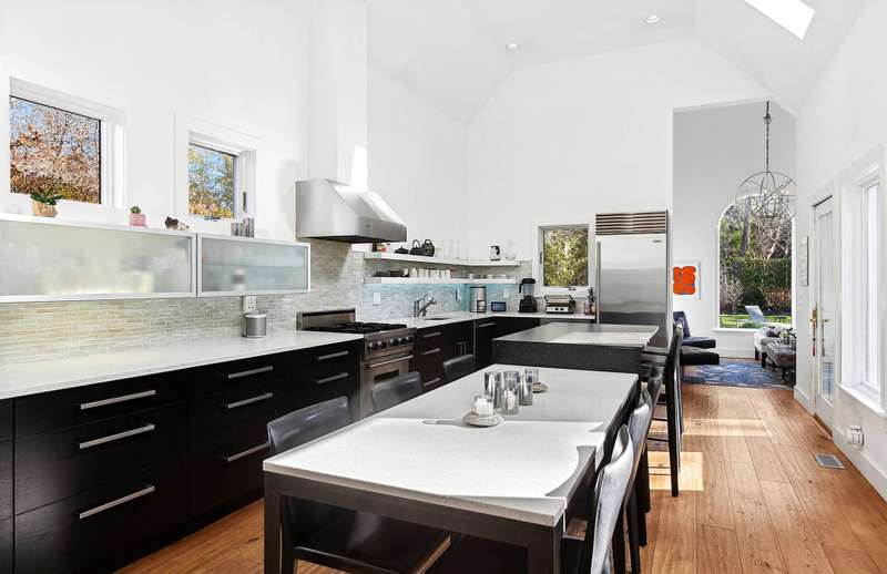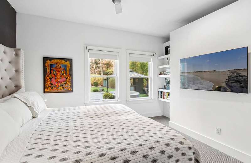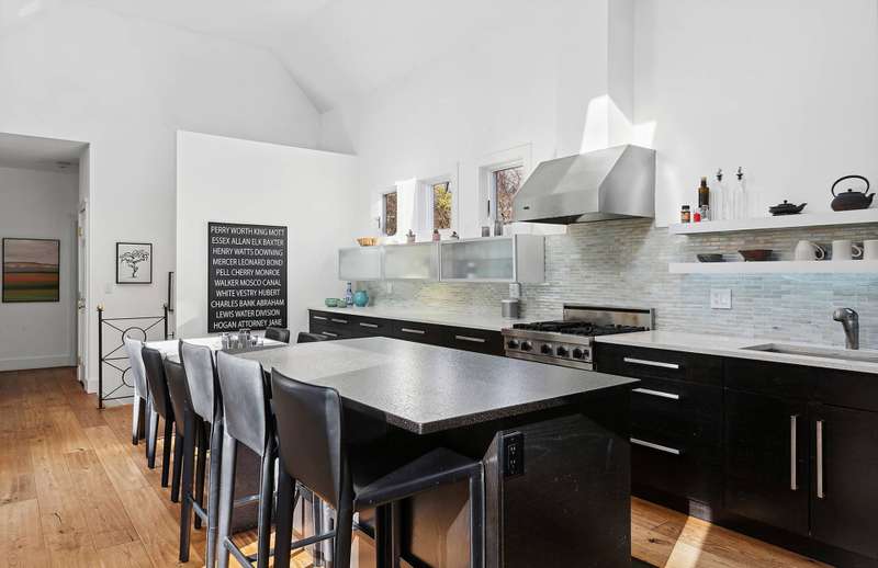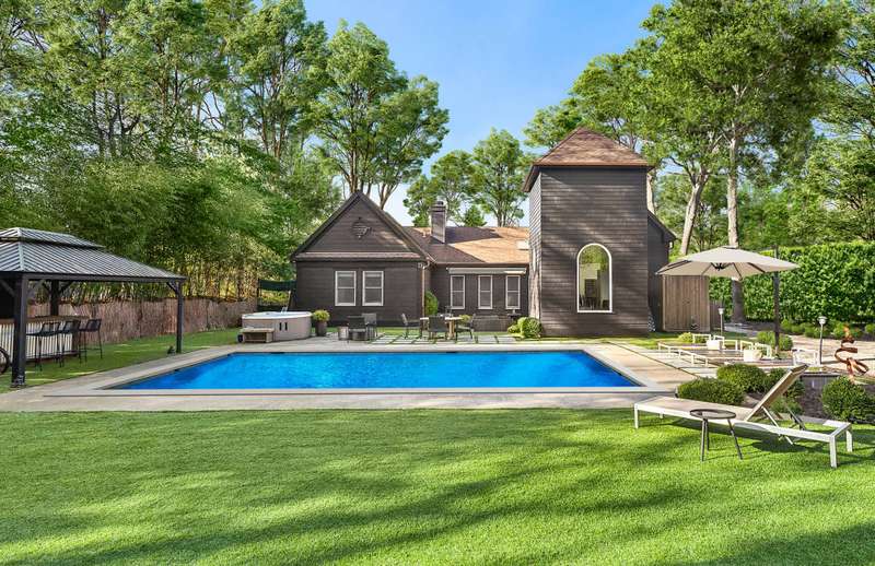 Discover the epitome of modern elegance at 37 Coves End Lane in North Haven, NY. A custom-built, transitional style home with 2,600+/- sf of beautifully designed interior living space just outside the Village of Sag Harbor. Featuring 4 bedrooms and 3 full bathrooms, this residence is designed for those who appreciate luxury and style. The gourmet kitchen is a chef's dream, featuring a Viking stove and hood, two Sub Zero refrigerators, and stainless-steel appliances. The torched black quartz countertops, white quartz accents, and backsplash, along with Du Chateau wide plank oak flooring, create a warm and elegant ambiance. The adjacent breakfast/dining room, with its soaring 18-foot cathedral ceilings and abundant natural light, offers stunning views of the pool and custom-designed backyard. The home includes two ensuite bedrooms, including a luxurious primary suite, and two additional bedrooms with charming custom lofts. The sunken great room, with its modern wood-burning fireplace, Du Chateau flooring, and cathedral ceilings, is bathed in natural light. The lower level is a haven for entertainment, featuring a chic gaming room currently set up as a professional race simulation room, an entertainment room, an office, and a dynamic sauna. Outside, enjoy the 20 x 40 solar-heated pool, outdoor shower, a chic covered gazebo, and a zen-like backyard with bluestone and polished white cement. The sunken garden sitting area is perfect for evening cocktails or lounging. To top it all off, this exceptional Sag Harbor property has water access at the end of the private cul-de-sac. Perfect for paddle boarding, kayaking and fishing. Live the Hamptons dream in turnkey luxury, convenience, and style just moments from the Village of Sag Harbor in North Haven.