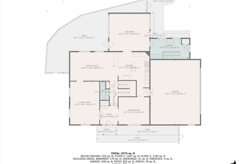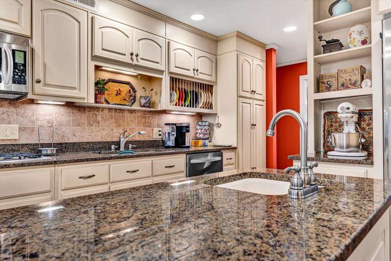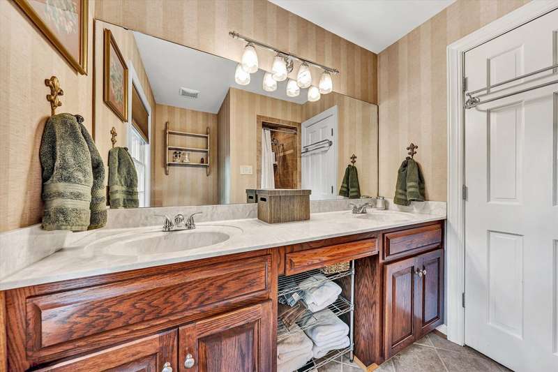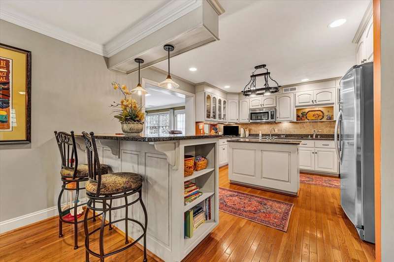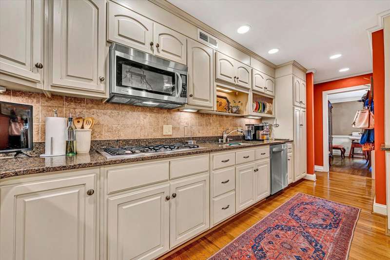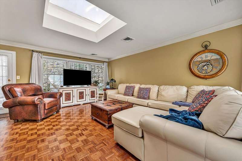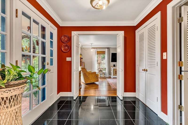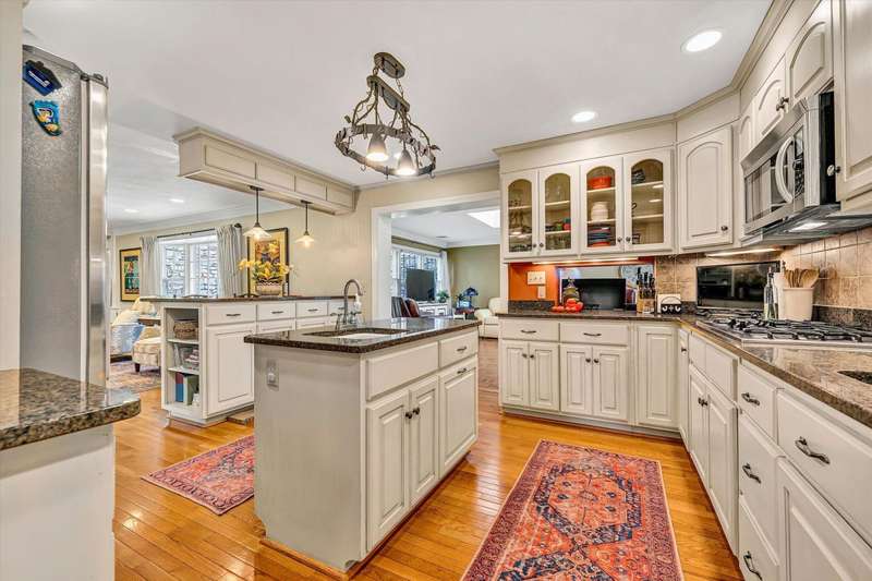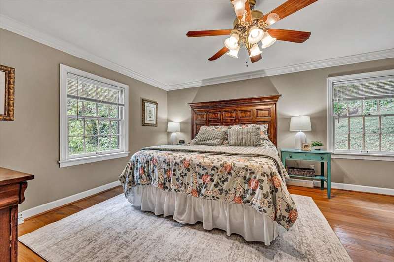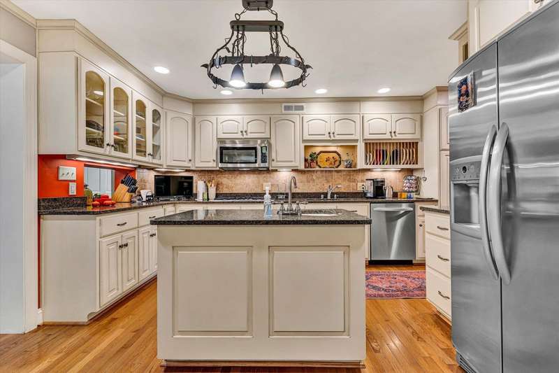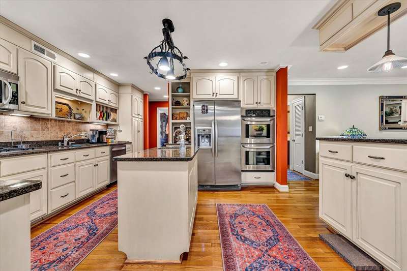 Located in South Roanoke, this classic 2-story brick Colonial offers 4 bedrooms, 2 full and 2 half baths. Hardwood floors run throughout the main and upper levels, complementing a beautifully renovated kitchen with granite countertops, stainless steel appliances, gas cooktop, and double wall oven - open to a cozy family room with fireplace and a sunroom overlooking the back patio. Additional spaces on main level include a formal dining room, living room, mudroom/laundry room, and half bath. Upstairs features a spacious primary suite with walk-in closet and en-suite bath with tiled walk-in shower, plus three additional bedrooms and another full bath. The finished lower level includes a den with wet bar & fireplace, game room, second half bath, and ample storage. The attached 2 car garage