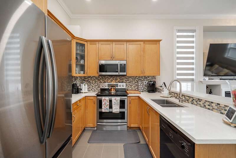 $1,199,900 with attached garage & fully finished basement! Best price in Panorama Village for these features. Spacious and updated 3-level home with 5 bedrooms & 3.5 baths—ideal for large or extended families! This home has a bright kitchen with pantry, great room beside kitchen with beautiful fireplace. Top floor laundry, and primary bedroom with walk-in closet. Fully finished basement with separate entry & suite potential. Recent updates include flooring, quartz counters, lighting, window coverings, & more. Enjoy the south-facing sundeck, lane-access attached garage, and low-maintenance lot. Walk to Fresh Street Market, Shoppers and Dollarama. OPEN HOUSE SAT NOV 15TH 1:00-3:00.