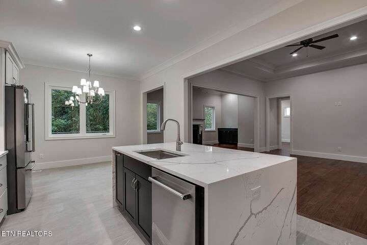 Stunning New Construction - Ready for new owners! Experience true luxury living in this beautifully designed all-brick and stone home, offering a perfect blend of elegance and functionality. Thoughtfully crafted with formal living areas, a keeping room, and a spacious dining room, this home is designed for both entertaining and everyday comfort. The heart of the home is the chef's kitchen, featuring a large island with quartz countertops, perfect for gathering with family and friends. Kitchen also has an Eat-in area and built in pantry. Each bedroom on the main level has a private ensuite with a walk-in shower, ensuring ultimate comfort and privacy. The lower level adds even more versatility, featuring a bedroom, full bath and kitchenette—ideal for guests, in-laws, or additional entertaining space. Enjoy golf, boating, hiking, pickleball, and more in the Kahite Subdvision of Tellico Village. Don't miss this incredible opportunity to own a brand-new, quality built home. Schedule your showing today! Some photographs are virtually staged and drone photography may have been used on exterior. Buyer to verify square footage, lot dimensions, taxes, POA, and any information important to the purchase of this property. Current taxes are for Lot only.