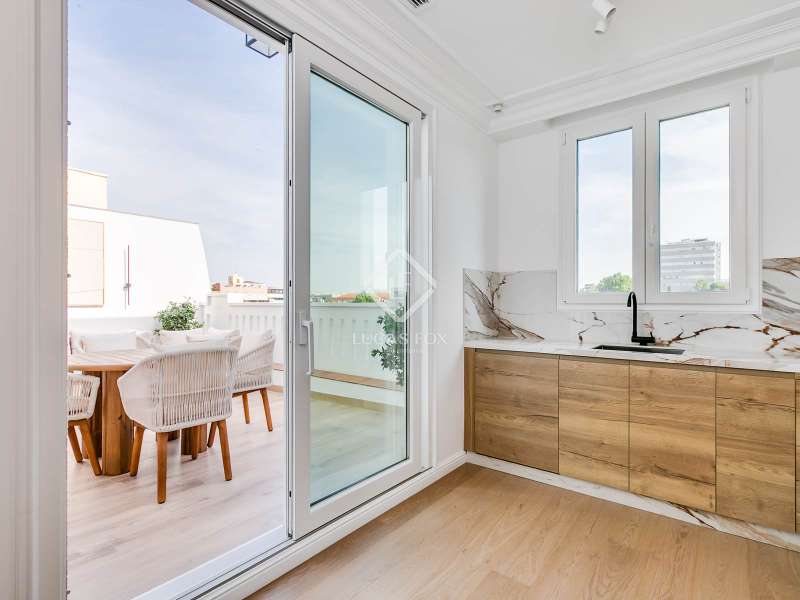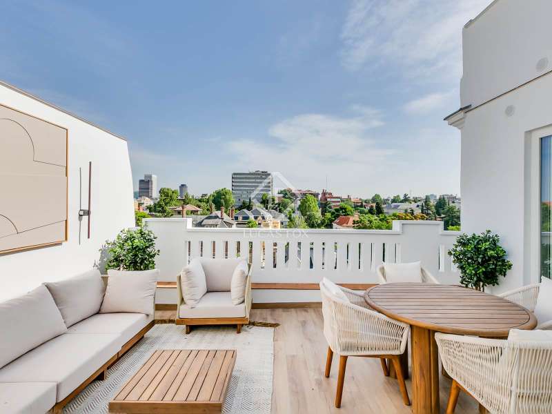 Lucas Fox presents this newly renovated penthouse, designed in a modern and functional style, in a prime area of Madrid, in the Castellana neighbourhood . The property features a spacious and bright dining room living room with direct access to a large private terrace, offering unobstructed views of northern Madrid. The semi-integrated kitchen boasts an elegant and practical design that seamlessly connects with the living area. The night area features two bedrooms, both with private bathroom. There is also a guest guest toilet . Natural light, high-quality finishes, and contemporary design make this penthouse an exclusive property , ideal for those seeking comfort and privileged views in an unbeatable location. Contact us for more information.