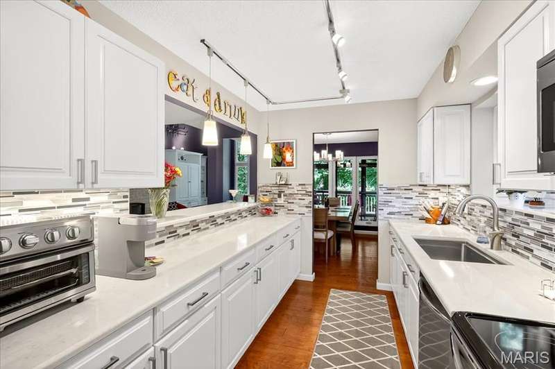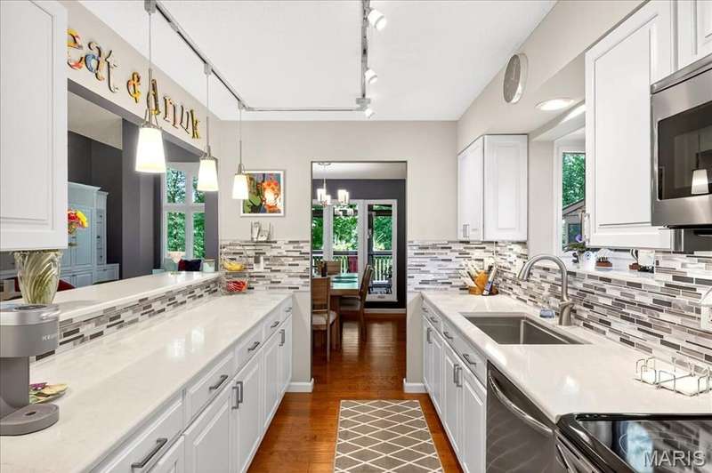 Tucked away in a peaceful wooded landscape, this beautifully updated contemporary home offers the perfect blend of modern design, thoughtful updates, and natural serenity. The dramatic vaulted great room serves as the heart of the home, featuring a floor-to-ceiling fireplace, custom built-in bookshelves, and expansive windows that bring the outdoors in.The recently remodeled kitchen is both stylish and functional, with sleek finishes, generous cabinetry, bar seating for casual dining or entertaining, and a convenient built-in desk area. Just off the main living area, a screened-in porch invites you to relax and unwind while enjoying views of the surrounding trees and wildlife. The spacious primary suite is a true retreat, complete with a fully updated ensuite bathroom and tranquil woodland views. The walk-out lower level adds incredible versatility, offering a cozy family room with a second fireplace, a full bathroom, and a dedicated exercise room. This home is filled with custom details and numerous updates, including wood flooring, remodeled bathrooms, an upgraded kitchen, deck, roof, and more. Every space has been thoughtfully enhanced to balance style, comfort, and functionality.Whether you're entertaining in the open living spaces, enjoying quiet evenings on the porch, or cozying up by the fire, this home offers the ideal mix of contemporary living and natural beauty.