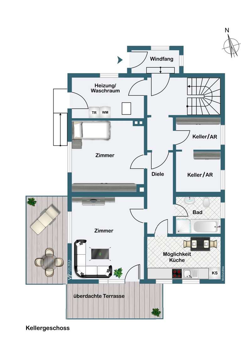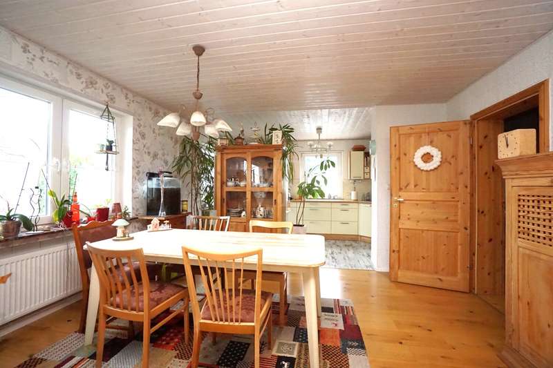 The detached detached house with 8 rooms was built in 1964 on a plot of approx. 658 m² near the school district of Fulda. It is solidly built, has two full storeys and no basement. The approved living space on the ground and upper floors is approx. 145 m², plus approx. 51.5 m² on the top floor, which has been converted into living space but is not approved as a separate apartment. This gives you a total of approx. 196.5 m² at your disposal. The special feature of the building is that the building services and two traditional cellar/storage rooms are located on the first floor. This means that the living space on the first floor is only approx. 34.5 m². There are also two rooms on the first floor, one of which has access to the spacious, covered terrace, a daylight bathroom with bath and shower and a room that offers the possibility/connections for a kitchen. The heating/technical room is also a laundry and drying room. From here, ground-level access leads via a ramp to the garden/terrace. The focal point of the main apartment on the 1st floor is the bright and spacious living/dining area. From there you can access the sunny south-west-facing balcony. The wood-burning stove creates a cozy atmosphere. The open kitchen adjoins the dining area. Also on the upper floor are the bedroom with a dressing room or study area and a daylight bathroom with a large walk-in shower. On the top floor, you will find four rooms that can be used individually as bedrooms, children's rooms, guest rooms or studies. There is also a daylight bathroom with bathtub and a separate kitchen. The garden has a garden shed and a round above-ground pool. A solidly built single garage is available. The gas central heating was renewed in 2003. The attic is heated with its own gas floor heating. The bathrooms were renovated in 2022 (ground floor) and 2020 (top floor). Most of the windows were replaced in 2016, only 3 are still from 1986. These are plastic windows with 2-pane insulating glazing. High-quality real wood parquet flooring is laid in the living and dining area and in the bedroom. The two fitted kitchens are also being sold and are included in the purchase price. In 2022, the courtyard, the entrance area and the path by the house were newly paved. Subject to inspection and approval, it could be an option to relocate the utility and storage rooms to the top floor and create an apartment of the same size on the first floor as on the second floor. The property will be handed over freehold and the handover can take place at the end of 2025.