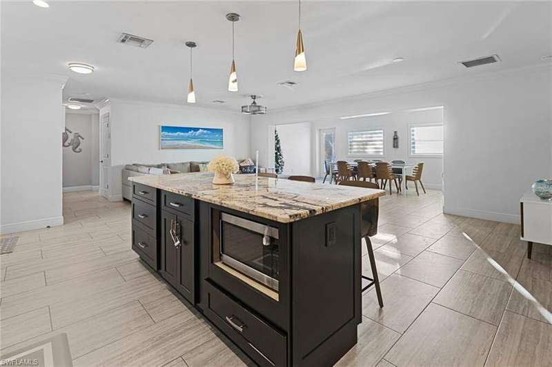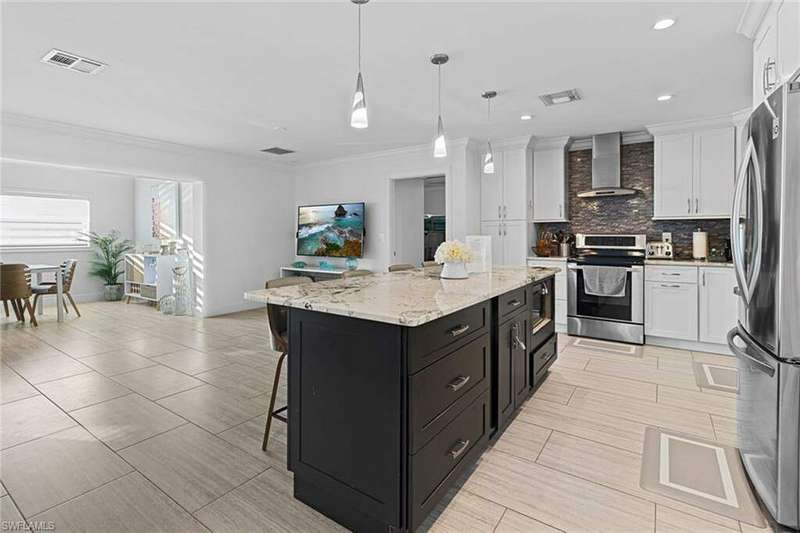 **Vacation Rental: Your Perfect Getaway in Cape Coral** Escape to this fully remodeled, stunning 3-bedroom vacation home in one of Cape Coral's most sought-after neighborhoods. Perfect for short-term stays, this luxurious retreat is just minutes from the Yacht Club, pristine beaches, top-notch restaurants, and endless entertainment options. Enjoy easy access to open water with no bridges in your way, perfect for boating enthusiasts. Inside, the home boasts modern finishes including new stainless-steel appliances, crown molding, hurricane impact windows and doors, and a new air conditioning system. Unwind in the den or challenge your friends to a game in the dedicated game room. Step outside to the expansive patio with a newly refinished heated pool and savor breathtaking sunsets thanks to the home's desirable western rear exposure. This is the ultimate getaway for those looking to relax in style and luxury. Book your stay today!