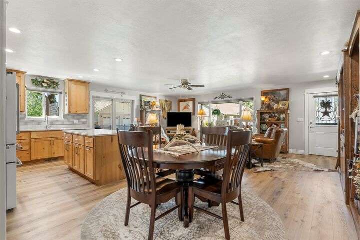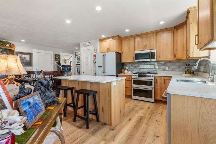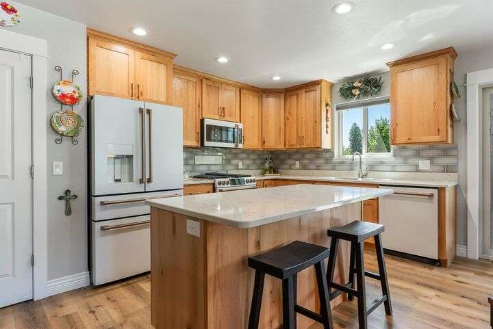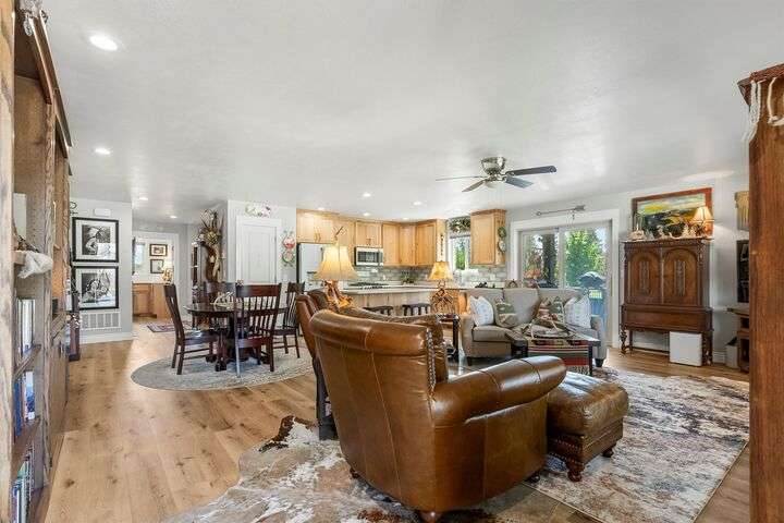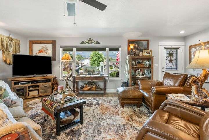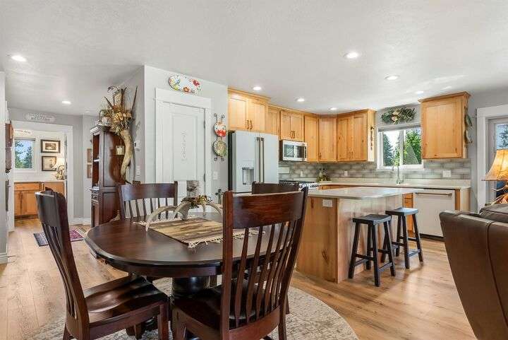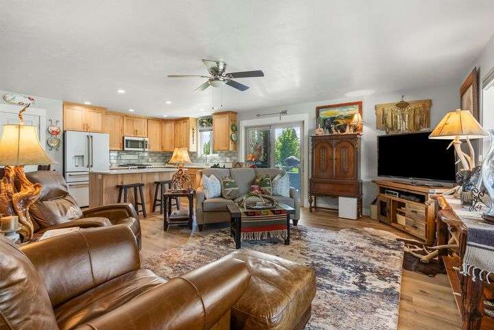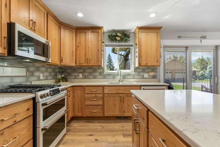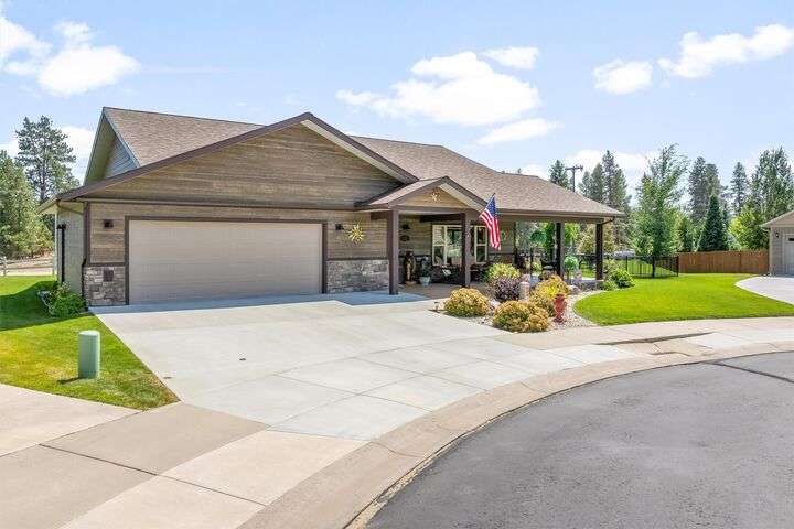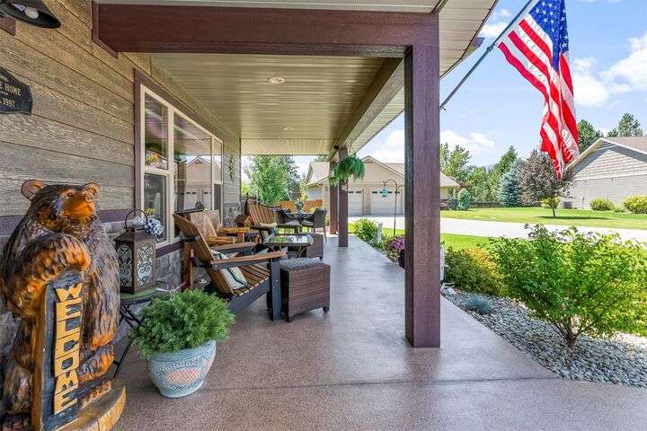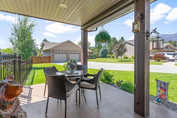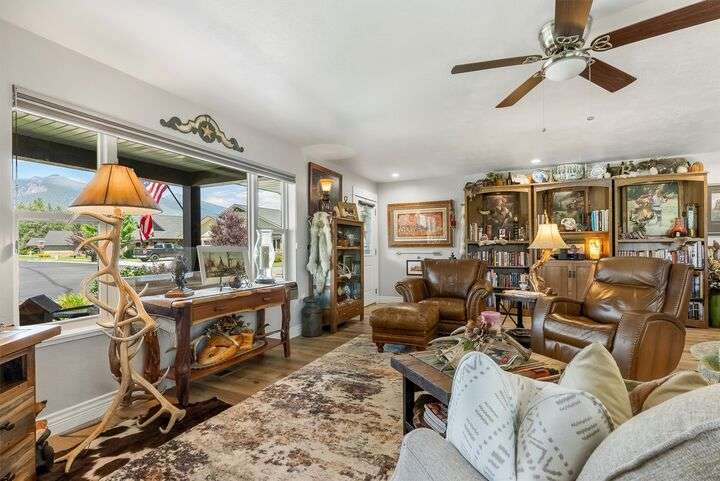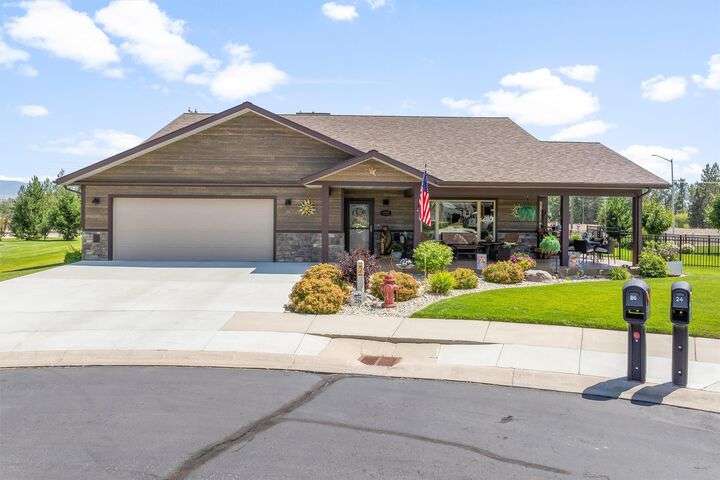 This move-in-ready home now includes a $5,000 credit to help you make it truly yours, whether you’d like to refresh a favorite space, buy down your rate, or apply it toward a price reduction from the current list price. The zero-step layout, wide doors, and accessible features make daily living easy, while the open great room is filled with light from southern and western windows. Remote-controlled solar shades, luxury vinyl plank flooring, and a seamless connection to the outdoors set the tone for a home that feels both stylish and practical. With winter getting closer, another highlight is the insulated and heated garage, built deeper and wider than a standard two-car and equipped with a gas heater and thermostat. It provides flexible space for larger vehicles, a workshop, or extra storage. Additionally the HOA shovels sidewalks and driveways - a tremendous feature for easy living! The kitchen stands out with quartz counters, a large island, GE Cafe; appliances including a gas double oven, soft-close cabinetry, hidden trash receptacle, and an oversized pantry. Just off the kitchen, sliding doors open onto a covered patio with sweeping views of St. Mary’s Peak and the Bitterroot Range. The home offers two bedrooms and two full baths. The guest bath includes a tub and shower combination with generous counter space, while the primary suite features vaulted ceilings, a ceiling fan, and a spacious ensuite with dual sinks, quartz counters, walk-in shower, and a remarkable walk-in closet. The laundry room adds everyday convenience with washer and dryer, cabinet storage, and utility sink, along with an oversized hallway closet nearby. This outdoor space has been upgraded with manual solar shades and a durable epoxy finish, creating a shaded retreat for mornings or summer afternoons. Beyond the home, Kootenai Creek Village offers a unique lifestyle in one of the Bitterroot Valley’s few 55+ communities. A gated entry, walking trails along a riparian corridor, and a clubhouse with full kitchen, exercise room, and social events create opportunities to connect. HOA dues cover water, sewer, lawn care, snow removal (including driveways and sidewalks), and access to the clubhouse, allowing for a low-maintenance lifestyle focused on enjoyment rather than chores. The property sits at the end of a short cul-de-sac with a fully landscaped yard enclosed by wrought-iron fencing and supported by underground sprinklers. With a major grocery store minutes away, downtown Stevensville nearby, and the larger amenities of Missoula and Hamilton just a short drive, this location balances privacy with access. For active adults seeking a peaceful yet connected lifestyle, this home offers the best of both worlds. Pride of ownership is evident throughout the home and the community, where neighbors enjoy privacy, quiet evenings, shared events, and easy access to nature. This is more than a home, it’s the lifestyle you’ve earned.