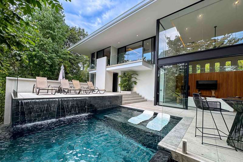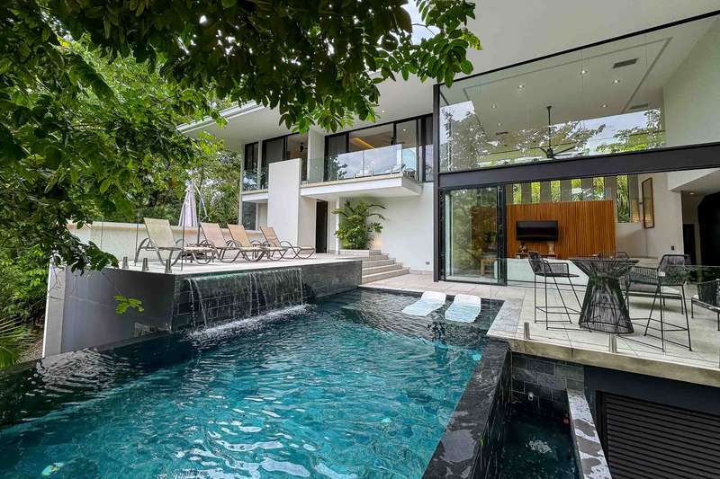 Nestled within one of Manuel Antonio's most prestigious private gated communities, this exquisite 3-bedroom, 3.5-bathroom luxury villa offers an unparalleled blend of sophistication, privacy, and wild natural beauty. Enjoy 24/7 security and immerse yourself in a verdant oasis where lush jungle embraces the home, inviting daily visits from playful monkeys and vibrant wildlife.