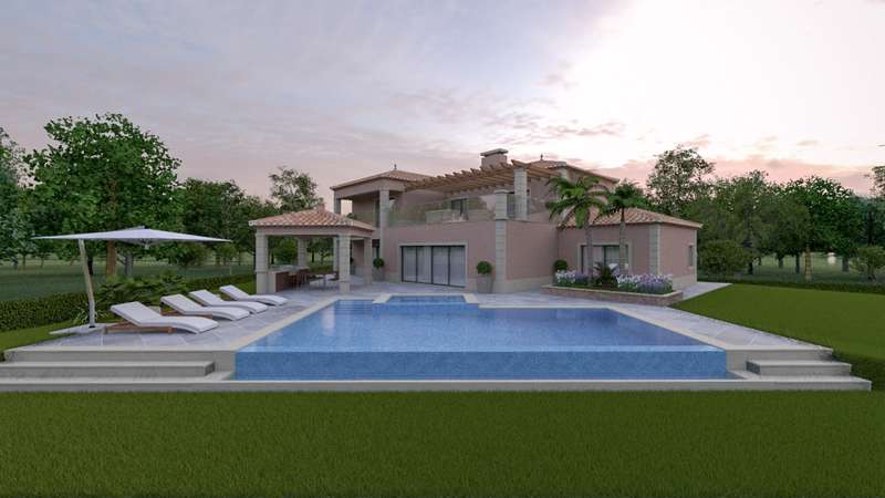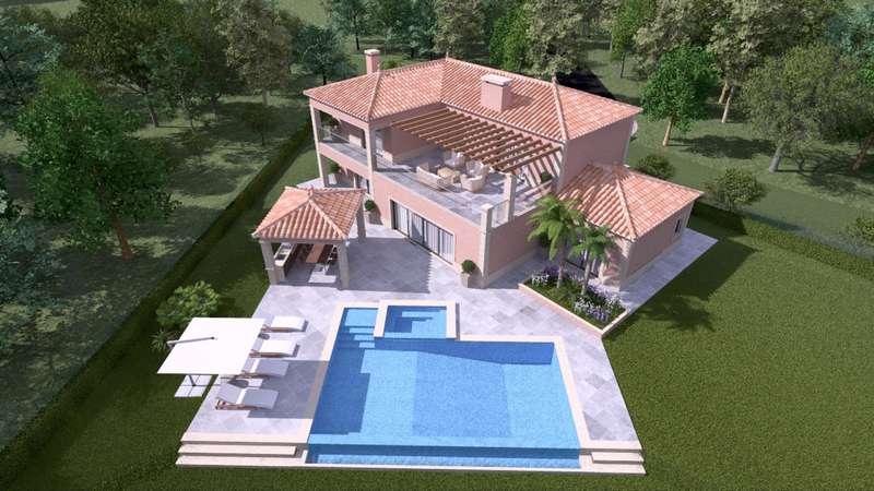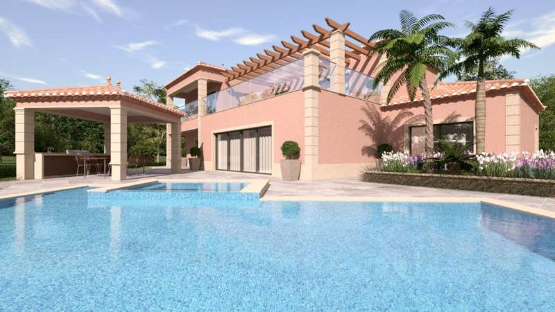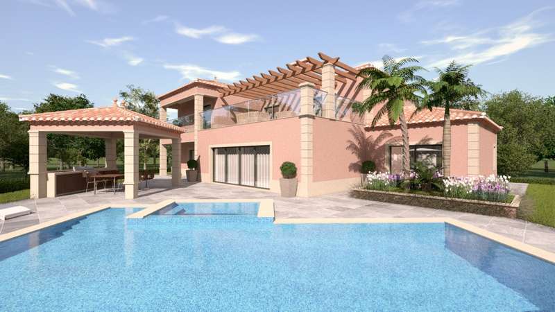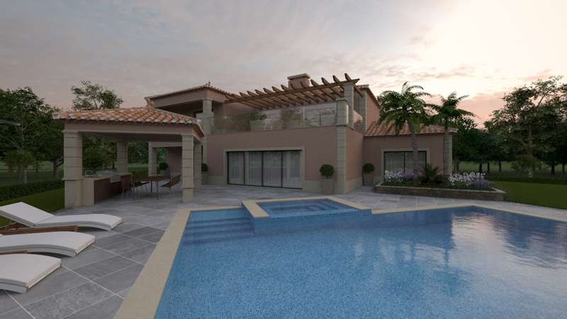 Luxury 4 bedroom villa, in construction phase, located in the highly sought after area of Alvor, near to the golf course of Penina Hotel & Golf Resort. The property boasts traditional style with all the modern conveniences, from underfloor heating to domotics system and photovoltaic panels. The property is fitted with air conditioning system throughout, aswell as a central vacuum system. Distributed over two floors, located on the ground floor, is a spacious living room with contemporary fireplace in open plan style with dining area. From here, there is direct access to the modern fitted kitchen, which offers access to a covered terrace perfect for outdoor dining. From the kitchen, there is also access to the laundry room and to the garage. Located on the ground floor are two large bedrooms, both with walk in closets and en suite bathrooms. On this floor there is also a service bathroom. On the first floor are located two more bedrooms, both with walk in closets, en suite bathrooms, and their own private, covered terraces, which are south facing. On the exterior of the property, there is a large garden, a heated infinity pool, a jacuzzi, a barbecue area, as well as space for additional parking. Only a few minutes by car to both the quaint fishing village of Alvor and the city of Portimão, stunning beaches, golf courses, shopping and leisure activities are all easily accessible. Approximately 50 minutes to Faro International Airport, with clear access to the A22 and N125. CHARACTERISTICS: Plot Area: 1 360 m2 | 14 639 sq ft Area: 350 m2 | 3 767 sq ft Building Area: 350 m2 | 3 767 sq ft Bedrooms: 4 Bathrooms: 5 Garage: 2 Energy efficiency: A FEATURES: Four en suite bedrooms Fully equipped kitchen Heated swimming pool Jacuzzi Barbecue Air conditioning Central vacuum Underfloor heating Home automation system Photovoltaic panels Covered terraces
