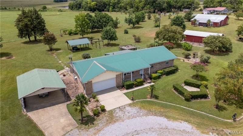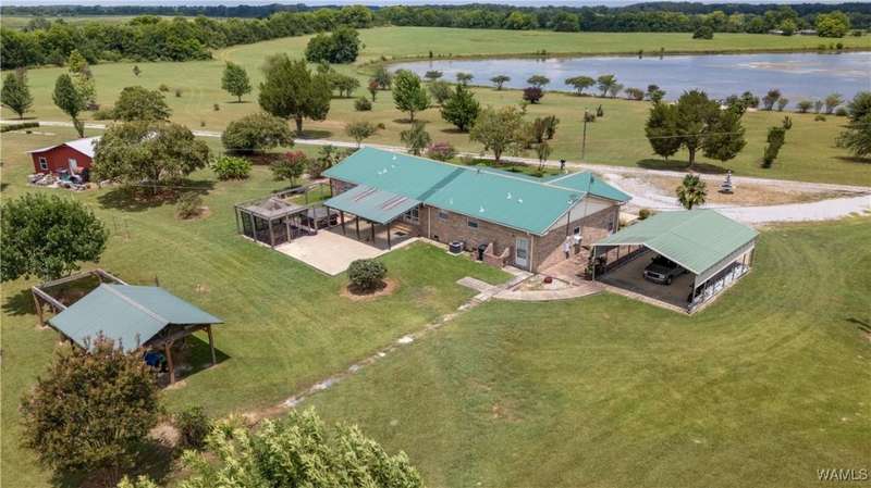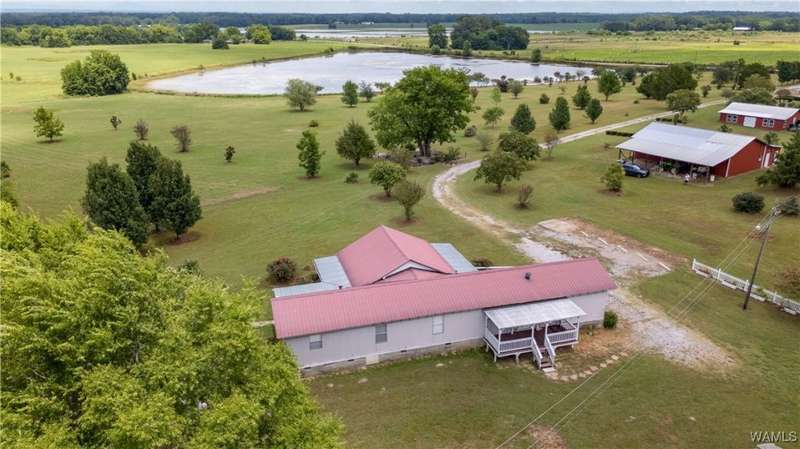 Welcome to this one-of-a-kind property situated on 56 +/- acres of scenic land, offering a blend of residential comfort and recreational opportunities. The main residence features 3 beds and 2.5 baths. Beyond the home, two distinct barn structures provide added value and utility. One smaller barn is utilized for traditional storage. The larger barn features an open space, kitchenette, restrooms, and separate shop. There is a second dwelling on the property a 3-bed, 2-bath mobile home. The property showcases an 11-acre lake stocked with catfish, bream, and bass. The property also have crape myrtles, fruit trees, electrical, and water access throughout the property. Whether searching for a multi-use estate or recreational retreat this distinctive property offers endless possibilities!