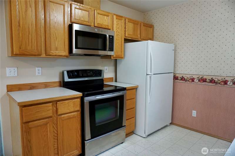 Welcome to this top-floor end-unit 2 bed/2 bath condo in Downtown Snohomish! Flooded with natural light ~ this open floor plan features a spacious living room with a cozy wood-burning fireplace, a kitchen with eating space, ample counter and cabinet space, plus all appliances included. The large primary suite offers a walk-in closet and full bath. Enjoy your morning coffee on the balcony or stroll to shops, groceries, coffee, and vibrant restaurants. Updates include a new water heater, dishwasher, and microwave. Comes with covered parking plus ample guest parking! Easy walk to downtown Snohomish, library, local grocery, restaurants & coffee shops. Trails and parks nearby!