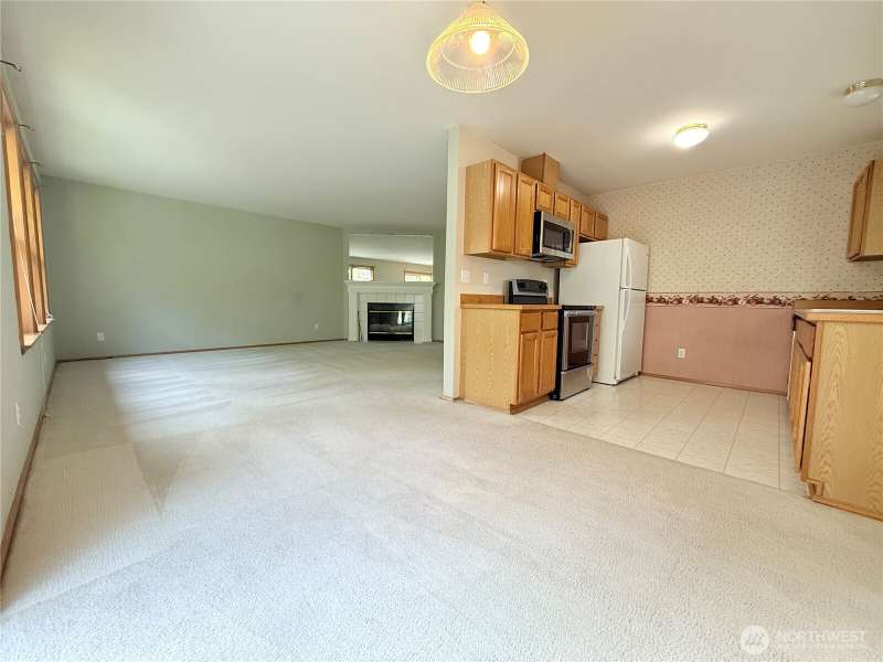 Welcome to this top-floor end-unit 2 bed/2 bath condo in Downtown Snohomish! Flooded with natural light, this open floor plan features a spacious living room with a cozy wood-burning fireplace, and a kitchen with eating space, ample counter and cabinet space, plus all appliances included. The large primary suite offers a walk-in closet and full bath. Enjoy your morning coffee on the balcony or stroll to shops, groceries, coffee, and vibrant restaurants. Updates include a new water heater, dishwasher, and microwave. Comes with covered parking plus ample guest parking!