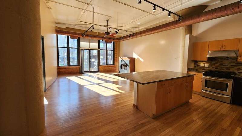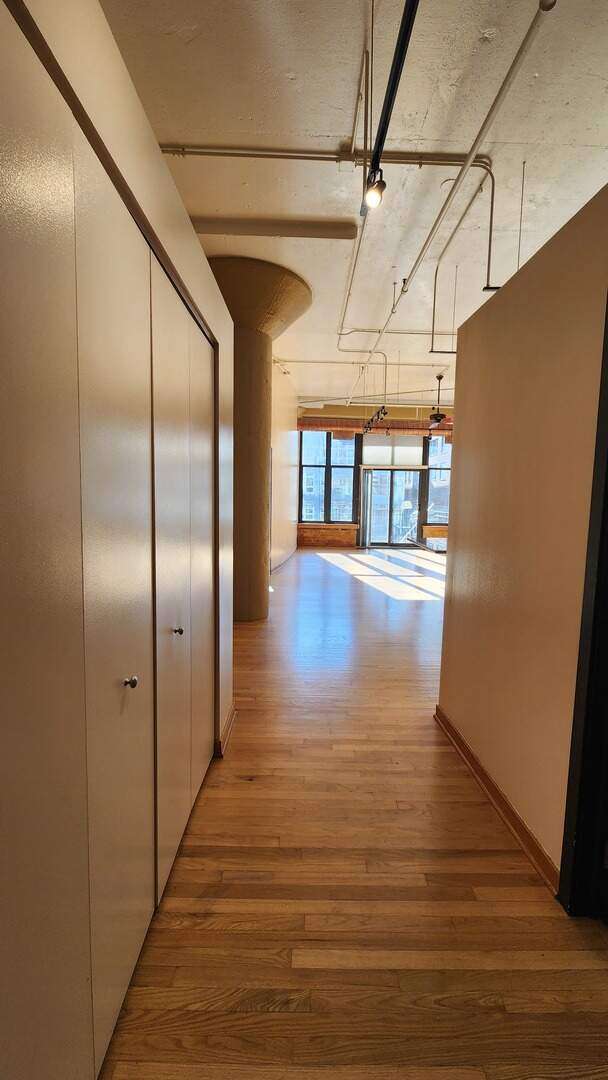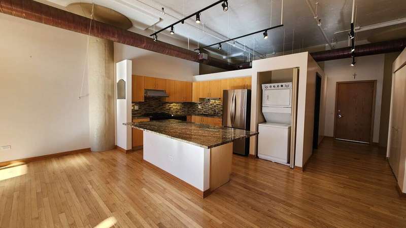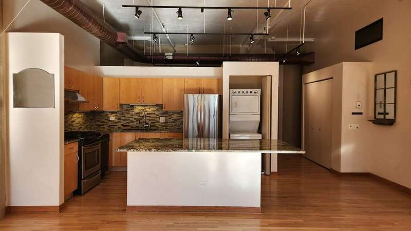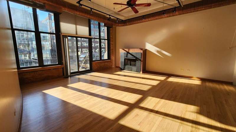 Stunning River North Loft in Union Square. Welcome to this rarely available River North gem! This spacious 2 bed / 2 bath split floor plan loft offers soaring 12' ceilings, gorgeous hardwood floors, and an open-concept living/dining area flooded with west-facing light. Cozy up by the gas fireplace or entertain at the 8' granite island in the stylish kitchen, complete with stainless steel appliances, abundant storage, and a custom backsplash. The primary suite boasts a dramatic wall of exposed brick, two walls of custom-organized closets, and a spa-like en-suite bath with double vanity and jetted tub. The second bedroom also features custom closet storage. Enjoy the convenience of in-unit laundry and unwind on your private 11' balcony. Monthly rent includes: heat, A/C, water, trash, doorman, cable, and internet-exceptional value! Garage parking is available for $250/month.