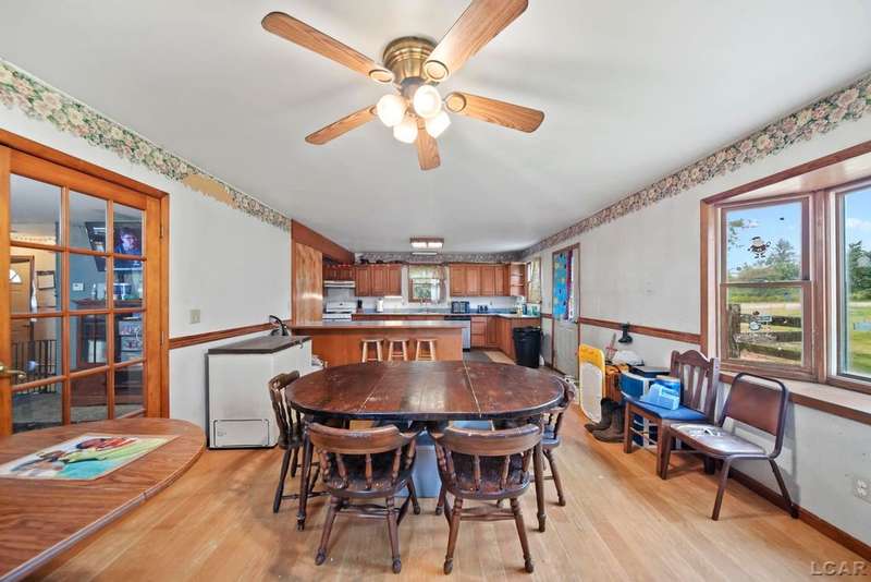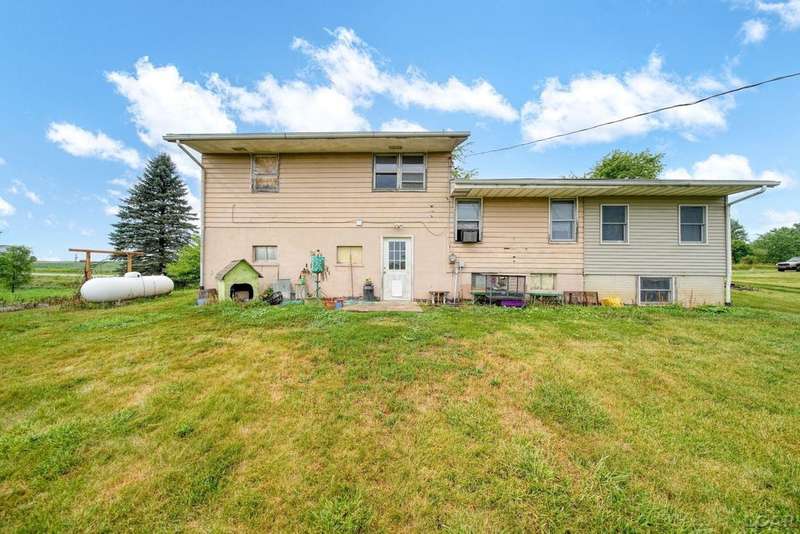 Country on 2 acres! 3 bedrooms and 2 baths and in lower level could have 2 more bedrooms with egress windows. Large living room and kitchen with a formal dining room with French doors to living room. Attached 1 car garage. circle driveway. A little TLC of paint and flooring. Close to Adrian, Hillsdale, Toledo.