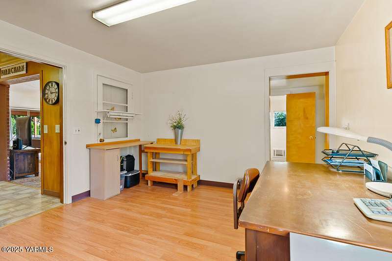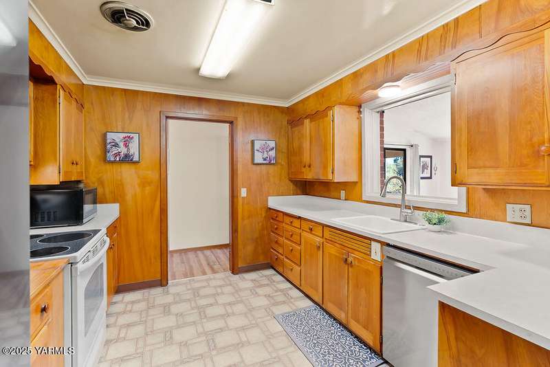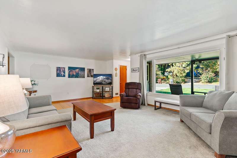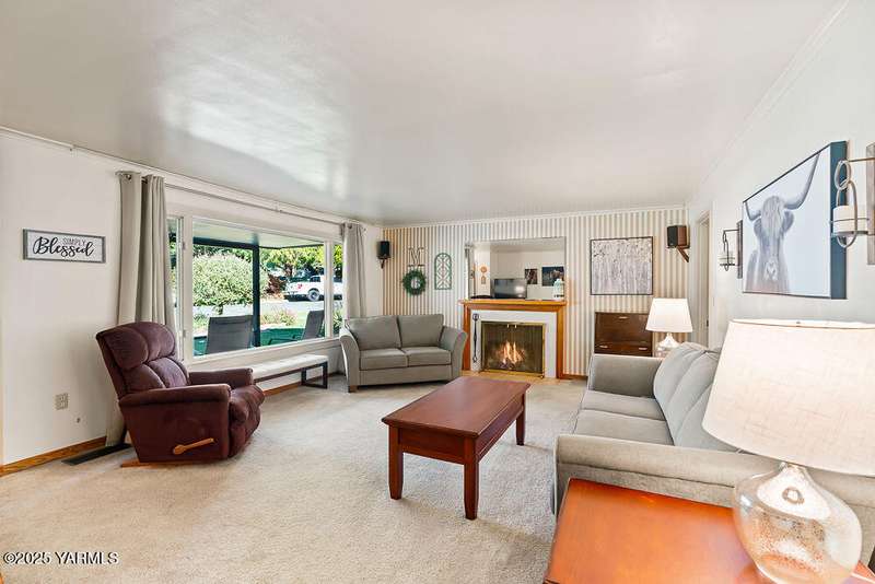 Charming single level rambler. Nicely maintained with updated roof, windows, HVAC fresh exterior paint and updated hot water tank. 2 large bedrooms and bath one end of home 3rd small bedroom/office., 3/4 bath laundry located on opposite side of home. Quaint kitchen with some new stainless steel appliances, updated countertops. Spacious living room with fireplace and large family room perfect for entertaining. Outside you have cozy covered deck, some new fencing and gates and beautifully landscaped front yard with newly installed inground sprinkler system throughout property. Extra storage in the one car garage with work bench and shelving. Bonus storage in attic space with easy pull down ladder. This home is waiting for you to come put your own personal touch with all the major work done.