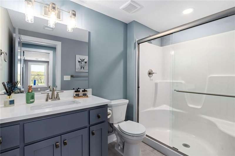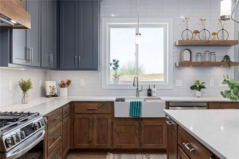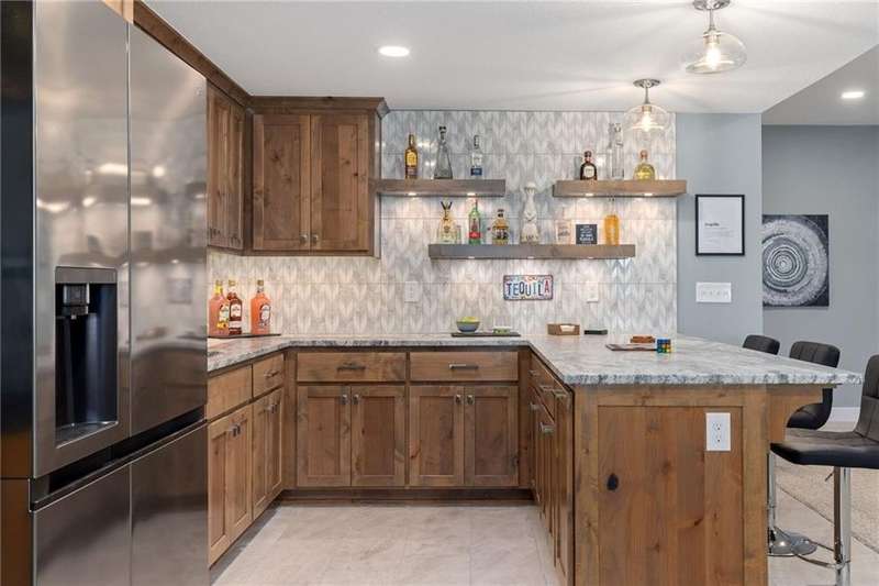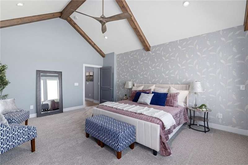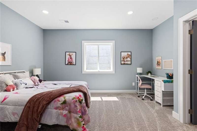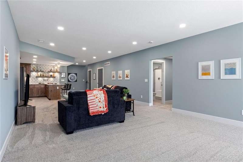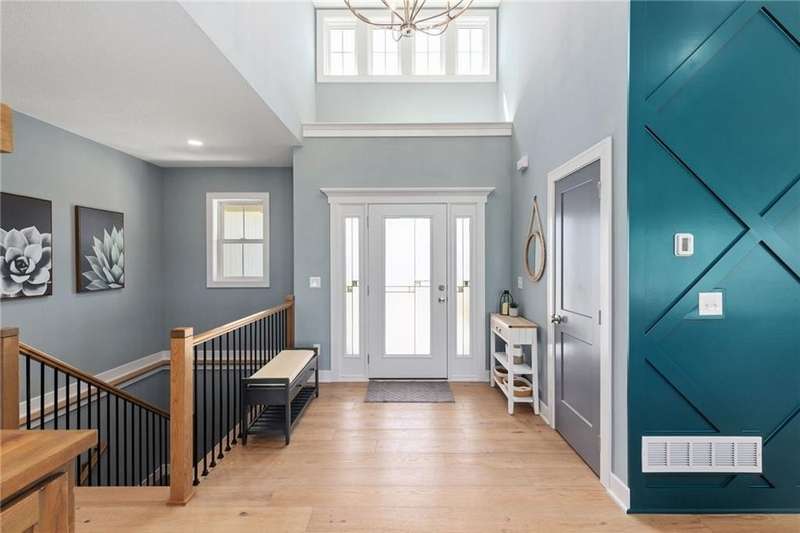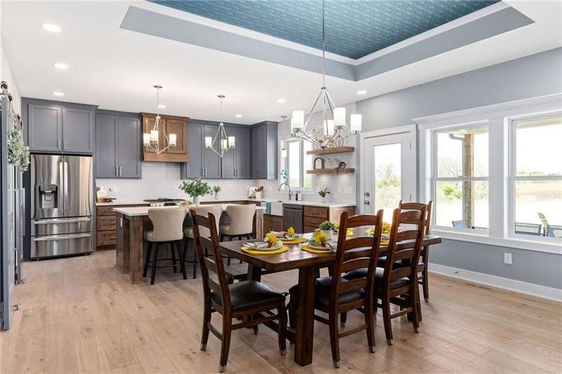 MOVE-IN-READY! *PARADE OF HOMES WINNER!*Meadowlark Ranch / reverse plan by PCDI Custom Homes on 2.5 acres! 5 Bedrooms & 3.5 baths - First floor primary suite, 2 Secondary bedrooms on first floor, 2 additional bedrooms on lower level- Theater Room in lower level with 2-level seating & bar seating. 1st floor living with 12’ ceiling, stone /gas fireplace, and built-ins- Lower-level family room features full wet-bar and access to walkout patio. 1st floor laundry with sink- Kitchen with 8’x4’ island and stainless appliances including refrigerator! Walk-in pantry with countertops. Upgraded trim details & accents throughout! Spacious primary suite with Large triple windows and vaulted ceiling with beams. Primary Bath with heated floor, large dual vanity space, freestanding tub, and large tiled shower with Rainhead + regular showerhead, & bench. Large spacious walk-in closet. Andersen window package, Lennox 96% efficient HVAC system, Delta plumbing fixtures throughout. Paved roads and Basehor-Linwood Schools!