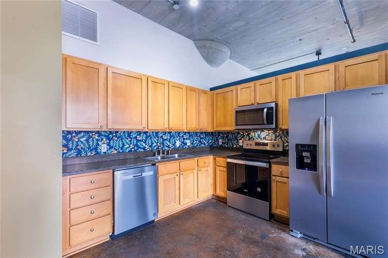 Don't miss this fabulous roomy Annex Lofts Condo in the downtown loft district on Locust! Unique to this awesome space are TWO deeded & secure garage parking spaces! 2 large bedrooms & 2 full baths plus in-unit laundry makes this home sweet home the perfect abode. Newer stainless kitchen appliances plus newer washer and dryer as well. Stained concrete floors throughout with tile in bathrooms and neutral carpeting in both bedrooms. Granite countertops and maple custom cabinets in the generously sized kitchen will give that resident chef plenty of work and entertaining space! Tons of common area amenities throughout the property including a fully equipped gym with top of the line machines & flat screen tvs! You have extra locking storage on the lower level with extra space to store your urban commuter bicycles as well! A lounge area/community room with pool tables, flat screens, sofas and chairs plus private 1/2 bath gives you entertaining or relaxing space outside your own personal condo for you and your guests . Walk outside the community room and you'll find a place to relax or fire up the grill after your busy work schedule concludes. Two main building elevators and a garage elevator make your entrance & exit no hassle & secure. Seller has paid special condo association assessments for 2025 in-full so you don't have to. All new appliances less than one year old! Flowing rooms & a large primary ensuite with walk'n closet sets the stage for a move-in ready city oasis!