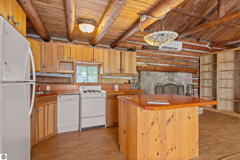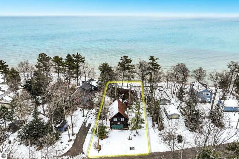 Welcome to The Log - a rare and historic waterfront retreat nestled just north of Northport on the beautiful Leelanau Peninsula. Once part of the renowned Camp Caho, a girls' summer camp dating back to the early 1900s, this one-of-a-kind property offers a unique blend of heritage, natural beauty, and potential. Set on land originally owned by the Haserot family, the home sits along a pristine stretch of shoreline with expansive water views and direct access to Northern Michigan's stunning coast. The main structure is full of character and charm, while a spacious detached garage with an apartment addition offers flexible options for guest accommodations or a creative studio. This property is being sold as is and does require work, presenting an incredible opportunity for restoration and customization. With a rich history and unmatched location, The Log invites you to bring your vision and breathe new life into a truly special piece of Leelanau Peninsula history.