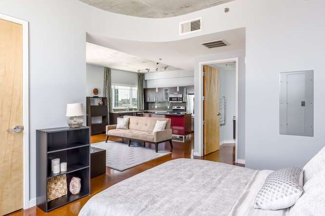 This is more than a condo--it's your window to the heartbeat of Nashville. Please note: Select listing photos have been virtually enhanced to show the potential for a bedroom wall partition, though it is not included in the current floor plan. The kitchen island has also been virtually updated to reflect a more neutral palette, a simple update that can be easily achieved with paint--allowing you to personalize the space without a full renovation.