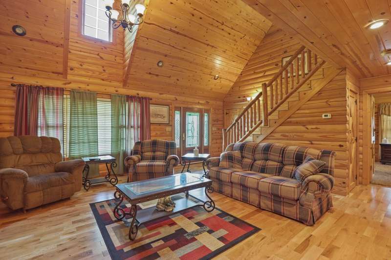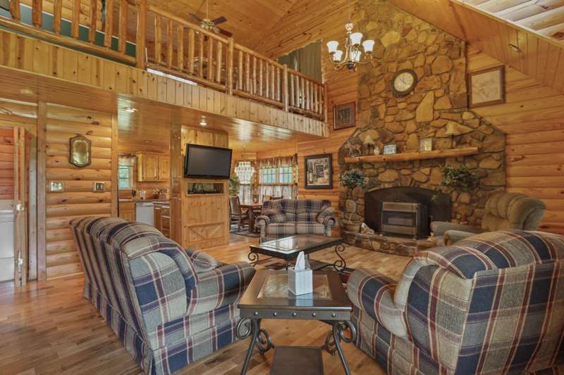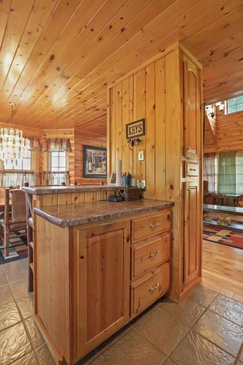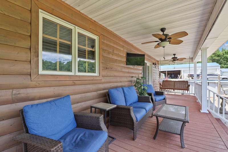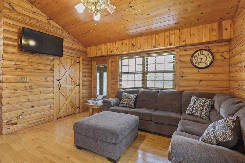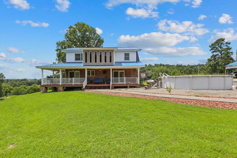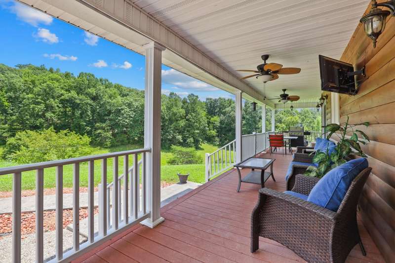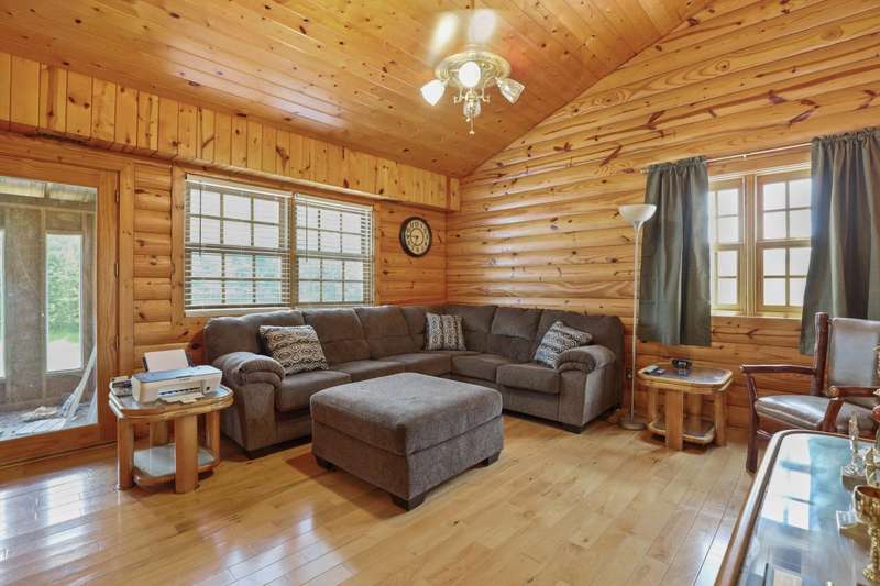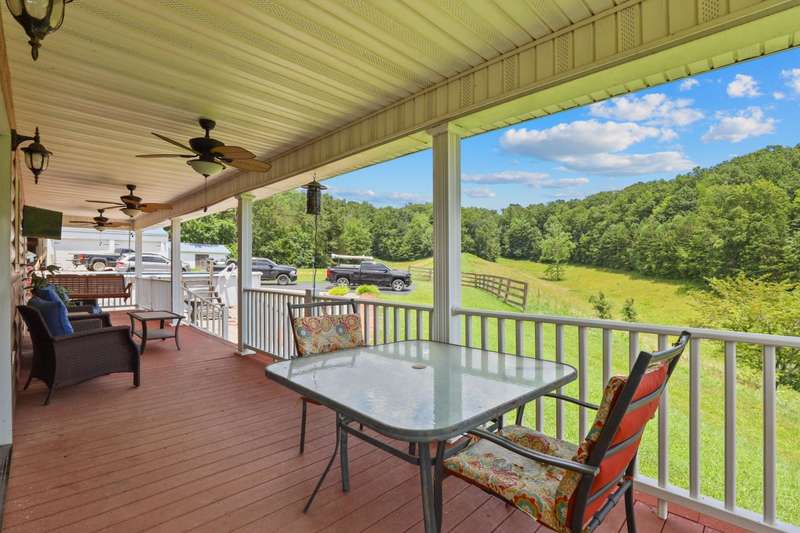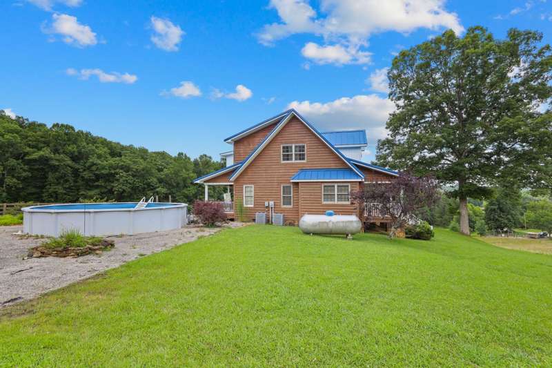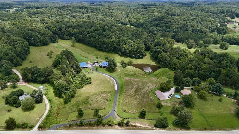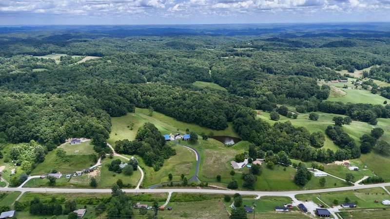 Perched atop a scenic hill in the peaceful Tyner community of Jackson County, this inviting 2 bedroom, 2 bathroom cabin offers an exceptional blend of comfort, functionality, country living, and natural beauty. Set on 20.14 mostly fenced acres, the home showcases panoramic, picturesque views of the surrounding landscape that can be enjoyed year-round. Conveniently located just 2.8 miles (about 5 minutes) from KY-30, this property offers the tranquility of country living while remaining accessible; only 20.7 miles (25 minutes) from London and 35.4 miles (52 minutes) from Berea, making it ideal for commuting, shopping, or enjoying nearby amenities. Step onto the expansive 7'x44' wrap-around covered porch, which stretches across the front, side, and back of the home???an ideal space to unwind, entertain, or simply soak in the serenity. Inside, the warm, cabin-style ambiance welcomes you with rich wood-paneled walls and ceilings, gleaming hardwood floors, and a striking handcrafted balustrade that frames the staircase and upper loft.. The main level seamlessly connects the living room, dining area, and kitchen, offering an open and functional layout perfect for daily living or hosting guests. The laundry closet is centrally located and adds convenience, while the spacious primary suite provides a private retreat with plush carpet in the bedroom, tiled flooring in the bathroom, a double vanity, and a custom tile shower. Upstairs, you'll discover the second bedroom, a full bathroom, and a versatile loft area that can function as a third bedroom, office, or bonus space and is complete with an open view of the living area below. Outdoors, this property truly shines. Explore trails that weave through mature hardwoods, ideal for hiking, hunting, or ATV rides. Wildlife, including deer and turkey, roam freely; a trophy buck was even spotted on the day the property was listed! A stocked .5 acre pond teems with bass, bluegill, and catfish while the above-ground pool offers a refreshing escape after a long day's work around the house. Additional features include a storage building and a 40'x70' structure that encompasses a 2 bay garage with gravel floor and a large covered equipment area that would be perfect for storing tractors, trailers, trucks, and recreational vehicles. Whether you're looking to live, farm, hunt, or simply retreat from the bustle of everyday life, this property delivers peace, practicality, and panoramic views in one rare package.