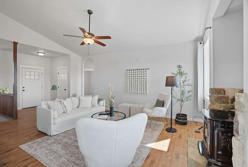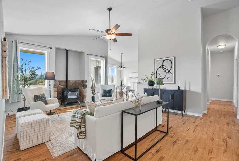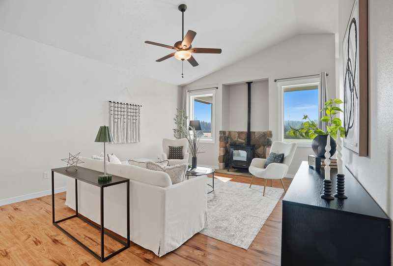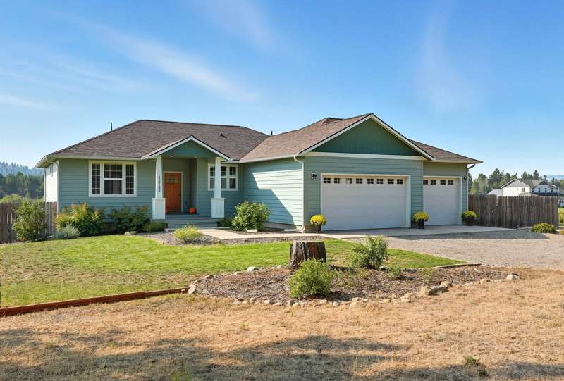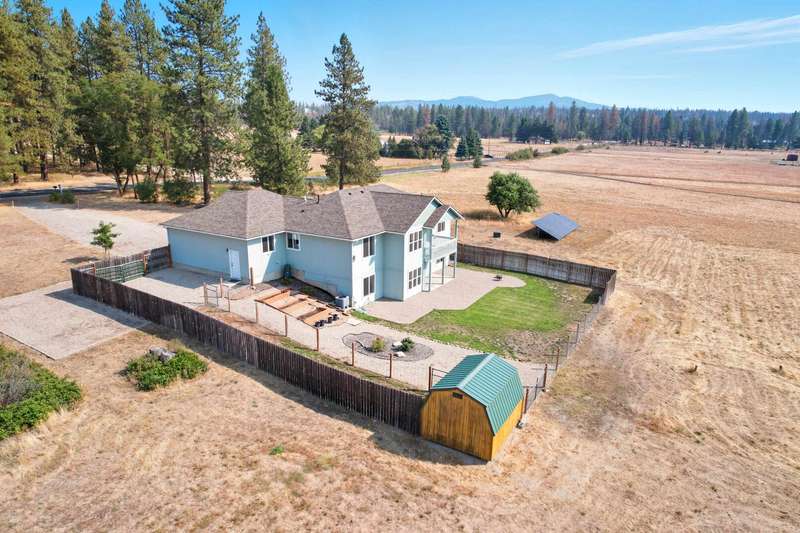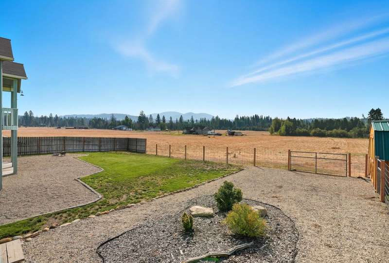 Step into this light-filled daylight rancher, tucked in a peaceful country setting just 10 minutes from HWY 2! Built in 2018, this 5 bd, 3 ba home offers over 3,000 sq. ft. The kitchen features granite counters, stainless steel appliances, & a spacious peninsula. The primary suite is complete with a soaking tub, tiled shower, walk-in closet, & convenient main floor laundry. The freshly finished basement (2024) adds 2 bedrooms, a full bath, and a large rec room. Enjoy 9 ft ceilings on the main floor, new carpet throughout (2024), a pellet stove for chilly days, and solar panels (2023) that keep power bills as low as $20–$35/month! Step outside to a covered deck with views of Mt. Spokane, a fenced backyard with garden beds, dog run, & fire pit. The property includes open alfalfa pasture, wooded acreage with a stream, paved road access, a 25+ GPM well, hard wired for generator, prewired for hot tub, & an oversized garage with extended 3rd bay. The perfect blend of efficiency, comfort, & country charm!