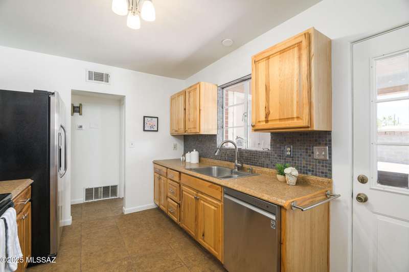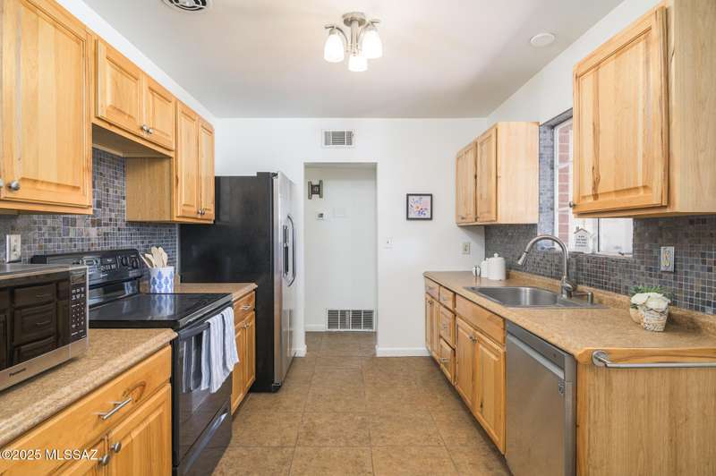 Just 1.5 miles from the University of Arizona, this updated 3-bedroom, 1-bath home offers prime location and rental income potential! Recent upgrades include a new roof (2025), new HVAC and water heater (2024), and fresh interior paint. With 1,303 sq ft, the kitchen features hickory cabinets, stainless steel appliances, and ample storage. Large windows provide natural light and Catalina Mountain views. The spacious, fully fenced backyard includes a double side gate for RV, boat, or extra parking plus a front driveway. Managed by a local property management company, this move-in-ready home is ideal as a U of A rental, first home, or easy-care residence near downtown Tucson, shopping, dining, and bike paths.
