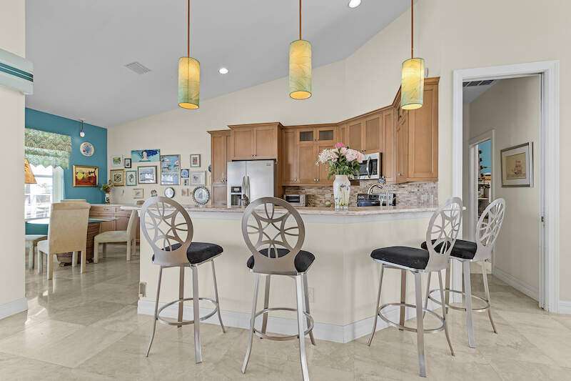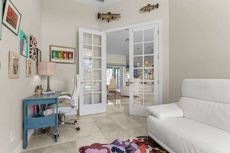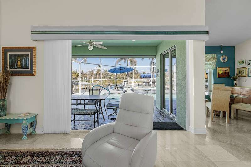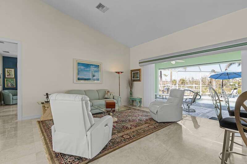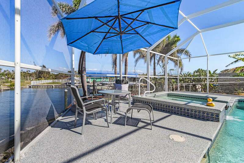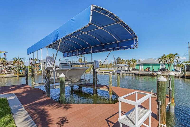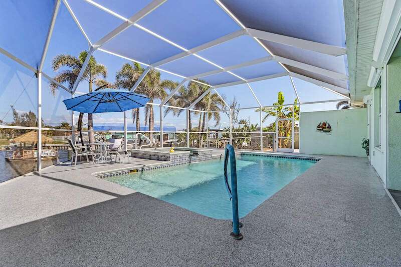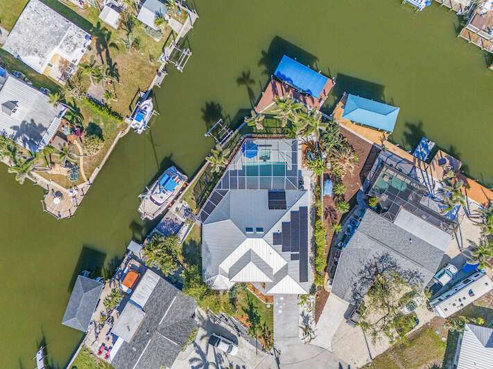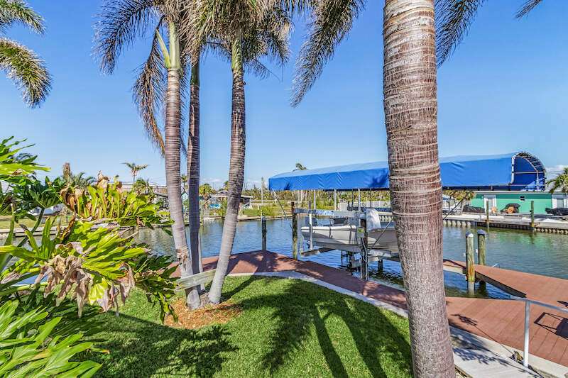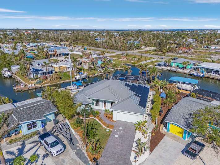**Waterfront Paradise with Panoramic Views & Luxury Amenities - A Must-See!** Experience coastal living at its finest in this stunning 2012 custom-built home, perfectly positioned to enjoy breathtaking sunrises, direct Gulf access, and proximity to Sanibel Island's famed shelling beaches-just a 5-minute ride away. Whether you're soaking in the saltwater pool, hosting guests in the private suite, or sailing from your backyard, this property offers an unmatched blend of luxury, comfort, and adventure **Key Features:** **Prime Waterfront Location** - Watch **manatees and dolphins** play from your deck or explore the Gulf with ease. - **192' reinforced seawall**, **two boat lifts** (one covered) both with 30 AMP service, and space for water toys. -** docked steps from the additional waterside patio. - Minutes to Sanibel's white-sand beaches, renowned for shelling and sunsets. **Resort-Style Outdoor Living** - **Oversized saltwater pool** and **built-in hot tub**, temperature-controlled via solar panels. - Expansive screened lanai with vaulted ceiling for unobstructed sky views-perfect for stargazing or sunrise coffee. - Lush native landscaping and a private deck off the master suite. **Elegant, Hurricane-Smart Interior** - **Split-bedroom layout** ideal for guests or multi-generational living: - **Guest suite** with private entrance, full bathroom, and pool access. - **Master retreat** featuring a spa-like en-suite (jetted tub, oversized shower, custom closets) and secluded deck. - **Versatile office/bedroom** with French doors and abundant natural light. - **Great room** with vaulted ceilings, travertine floors, and pocket sliders opening to the pool. - **Chef-ready kitchen** with expansive counters, breakfast bar, and dining area with deck access. **Premium Upgrades & Peace of Mind** - Built to **hurricane-resistant standards** with electric storm shutters, metal roof, and impact-resistant features. - Whole-house water filtration, epoxy garage floors, and meticulous maintenance. - **Exceptional Value** Priced competitively per square foot, this home offers rare waterfront access, luxury finishes, and income potential (guest suite/rental). Don't miss the chance to own a turnkey retreat designed for entertaining, relaxation, and Florida's coastal lifestyle. **Schedule your tour today-this "WOW Factor" gem won't last long!**