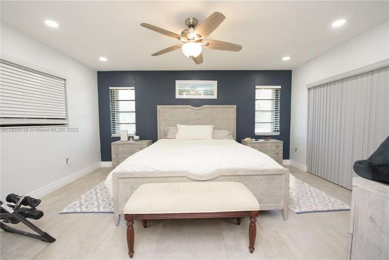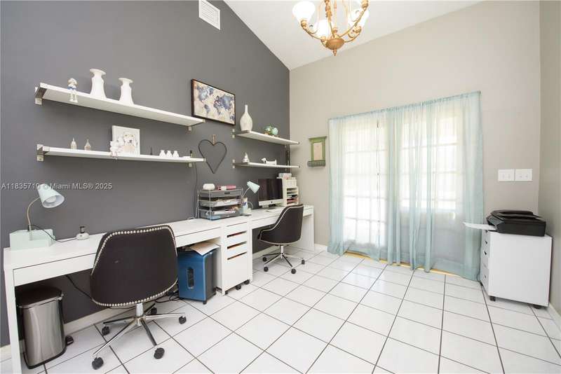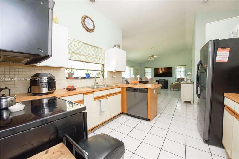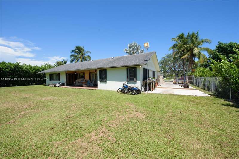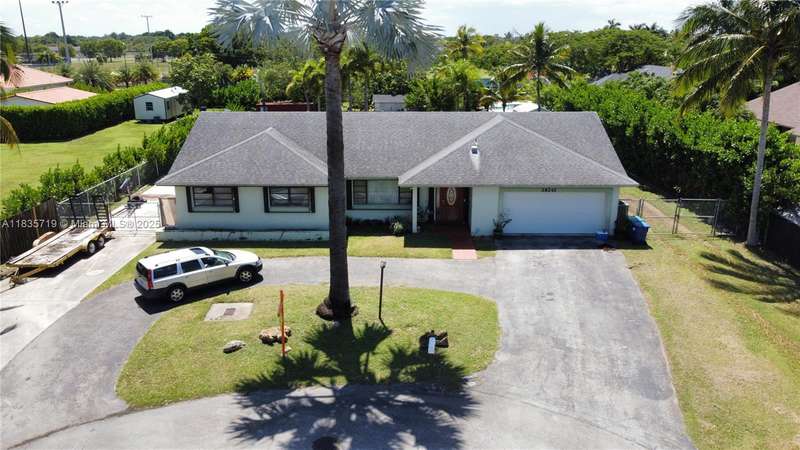 Located in Redlands Mansion Subdivision, this 3BR/2BA home features a foyer, living room with drapes and mirrored wall, and family room with large window and sliding doors. Kitchen offers white cabinets, track lighting, double sink, eat-at counter, and pantry. Dining room with chandelier and French door. Remodeled bath (2020) with shower, 1 sink, and rear door. Bedrooms have wall-to-wall closets; master has walk-in with built-ins, sliding door, and recessed lights. Covered patio with 2 fans, fenced yard, shed, slab, double gates, coconut trees. 2-car garage with auto hurricane doors, attic. Roof 2013. Accordion shutters. PROOF OF FUNDS AND/OR PRE-APPROVAL LETTER REQUIRED PRIOR TO SCHEDULING A SHOWING OF THE PROPERTY!