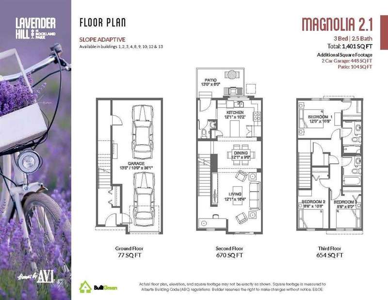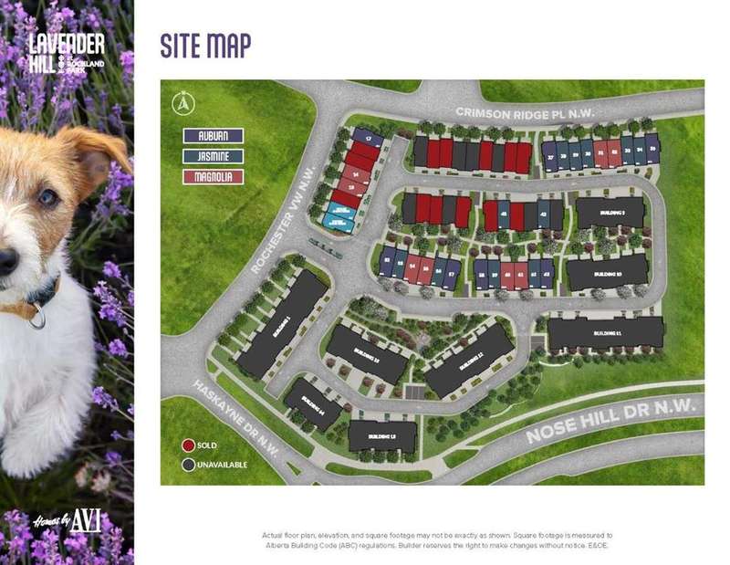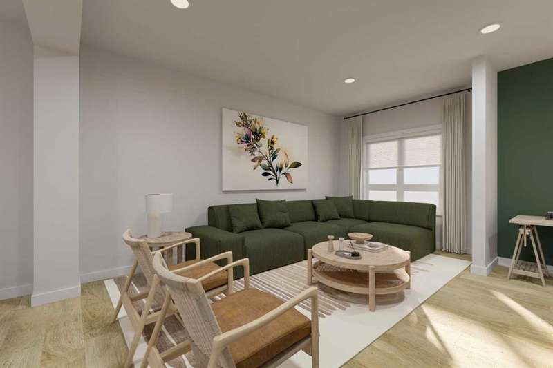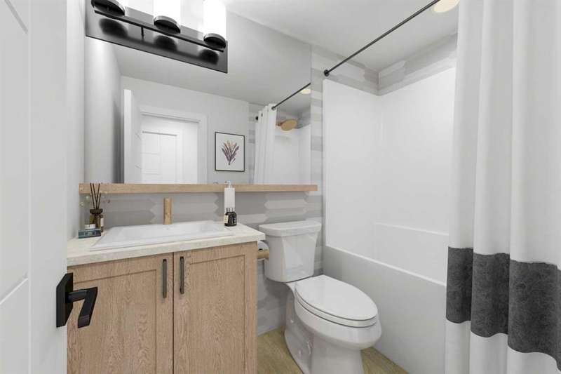MAYBE IT’S THE SOUTHERN LIGHT—OR HOW THE KITCHEN FLOWS INTO THE REAR PATIO—BUT EVERYTHING ABOUT THIS HOME JUST WORKS. The Magnolia model at Lavender Hill in Rockland Park delivers a smart layout, timeless finishes, and a sense of space that fits real life. The curb appeal is crisp and modern, with a SOUTH-FACING FRONT that keeps the main living areas bright throughout the day. Built into the natural slope of the hill, the design gives you a ground-level TANDEM DOUBLE GARAGE below and a second floor LIVING AREA THAT WALKS-OUT TO GRADE—something rarely found in a townhome. Inside, warm flooring and a neutral palette keep the focus on light and flow. The PRIVATE FRONT ENTRY—rare for attached homes—sets the tone for a plan that values function as much as style. On the main floor, the living, dining, and kitchen connect naturally. Toasted-almond LVP runs wall to wall, grounding the space in a calm, durable texture. The kitchen pairs designer QUARTZ COUNTERS with a modern subway tile backsplash, and a CENTRAL ISLAND that works as prep space, command centre, and casual dining spot. A rear entry door leads directly to BACK PATIO—perfect for grilling, morning coffee, or catching the evening light. Between the living room and stairs, a wide pocket of space adds a smart spot for a desk, bookshelf, or bar cart without interrupting flow. Upstairs, three bedrooms maximize privacy and efficiency. The PRIMARY BEDROOM includes an ENSUITE and WALK-IN CLOSET, while two secondary bedrooms, a main bath, and UPPER-FLOOR LAUNDRY handle the rest of daily life without wasted steps. ROCKLAND PARK amplifies it all: a northwest community designed around connection, outdoor living, and everyday convenience. Scenic pathways link to parks and playgrounds, while plans for a RESIDENTS-ONLY CLUBHOUSE include an OUTDOOR POOL, FITNESS CENTRE, and courts. With mountain views to the west and quick access to both Crowchild and Stoney Trail, it’s a community that balances retreat and reach in equal measure. Possession is ready for the end of November—a fresh start, in a brand-new home that makes practical look good. Book your showing today! • PLEASE NOTE: Photos are Virtual Renderings – fit and finish may differ on finished spec home. Interior selections and floorplans shown in photos.