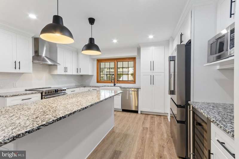 Beautifully renovated, true five-bedroom home with an open concept in a convenient North Wilmington location. Rarely do you come across an opportunity to rent a home with this many updates. Arrive to a charming black and white split level home on a cul de sac street. Walk into a bright foyer and into the main level with custom LTV flooring, fresh neutral paint, recessed lighting, and new fixtures. A gorgeous kitchen renovation includes: a large center island, granite countertops, custom white shaker cabinetry, crown molding, a farm sink, brand new Frigidaire professional series appliances, a beverage station, pendant lighting and more. Go down six steps to a family room space with an office nook, a powder room, and access to the laundry/mud room. The entire second level serves as a master bedroom retreat. Features include refinished original parquet flooring, two big closets, a modern full bathroom with double vanity and custom shower and a sitting room with two more closets that could easily be used as a nursery. The upper level has four generously sized bedrooms with great closet space and a beautifully remodeled hall bathroom. A full basement and an oversized one car garage provide plenty of storage. The HVAC system and roof were replaced in the last three years. Don't wait on this property or it will be gone. Welcome Home.