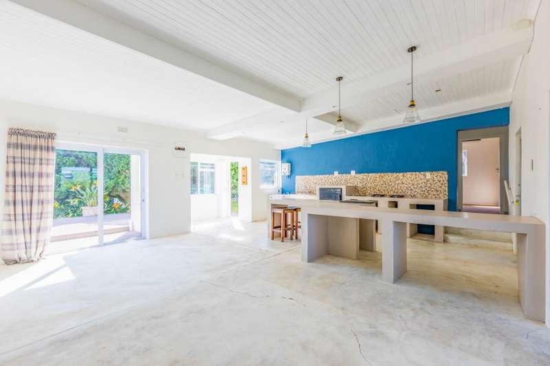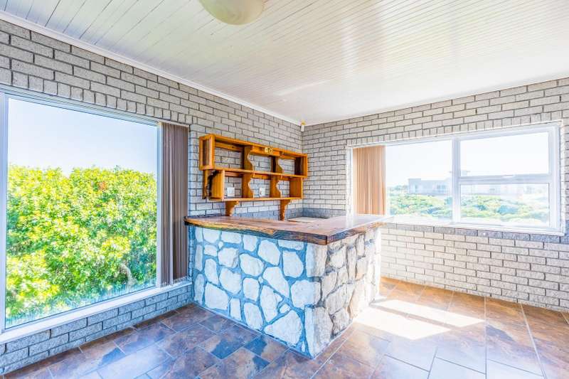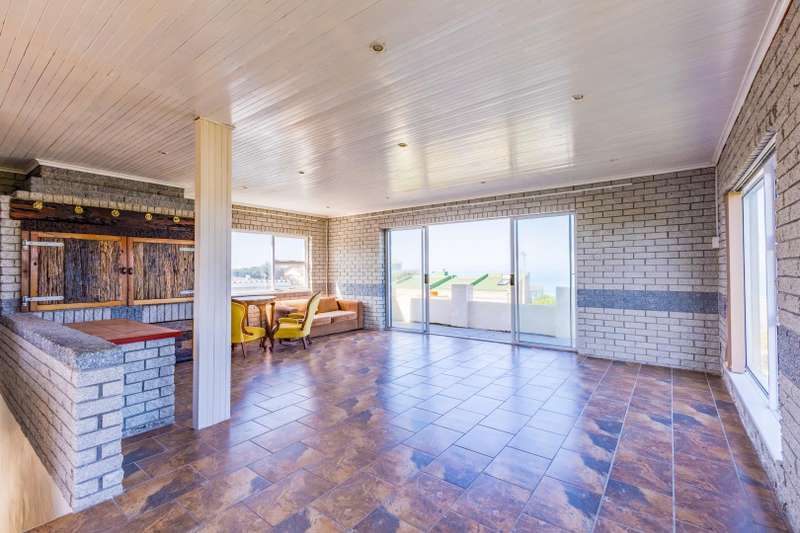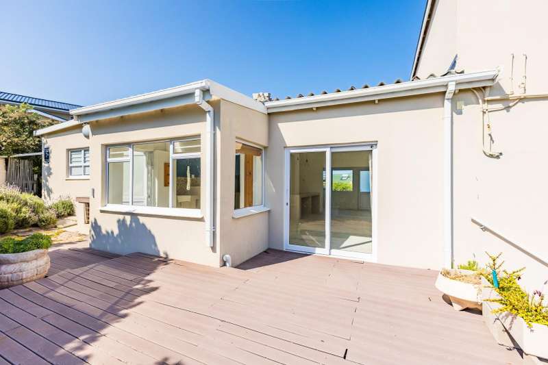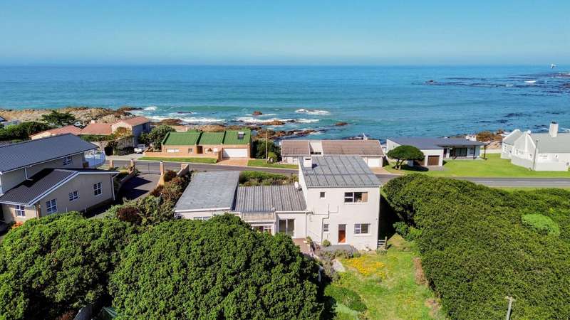 Sole Mandate. Situated just 250 metres from the coast on a large stand with permanent ocean views to the south and mountain views looking north. The ground floor comprises a spacious open plan living area/kitchen with adjoining pantry. Three bedrooms and a full bathroom. Access from the living area to the double garage with automated doors. To the first floor is a large braai room with a built in bar and sliding door access to the balcony. Shower & toilet. To the rear of the house is an outdoor room (4th bedroom or workroom) with shower & toilet. The rear of the property is fully fenced with a deck and an extensive north facing mature garden. The existing outbuilding is not on plan. This is an excellent opportunity to upgrade the current dwelling with enough ground to extend if required. This is a much sought after location with lots of potential to the right Buyer.