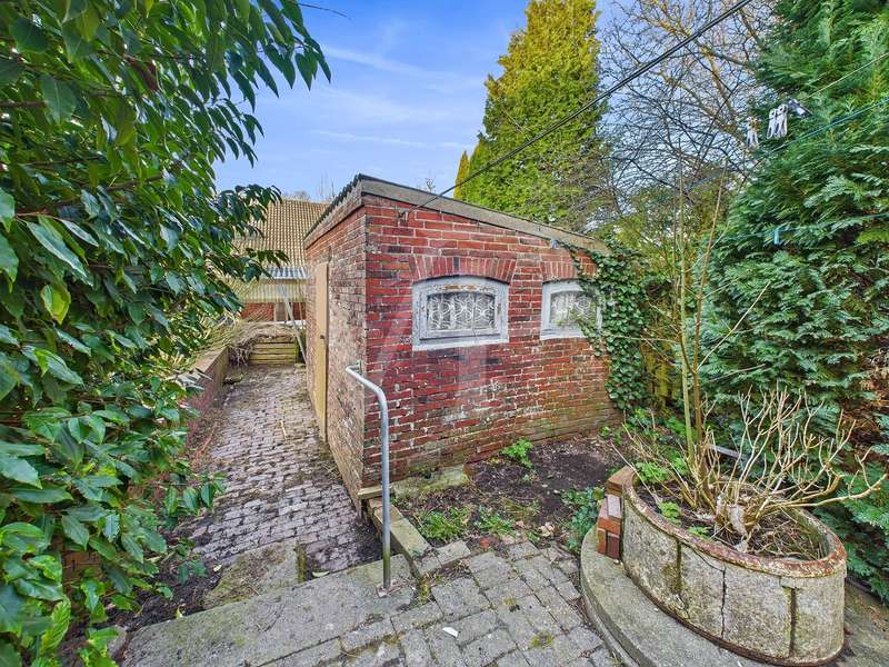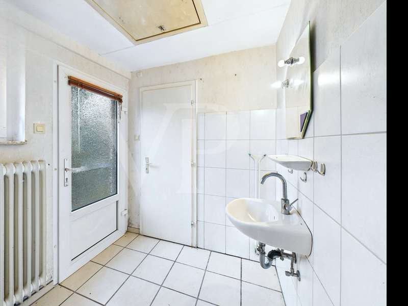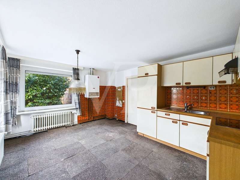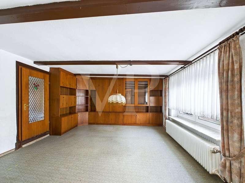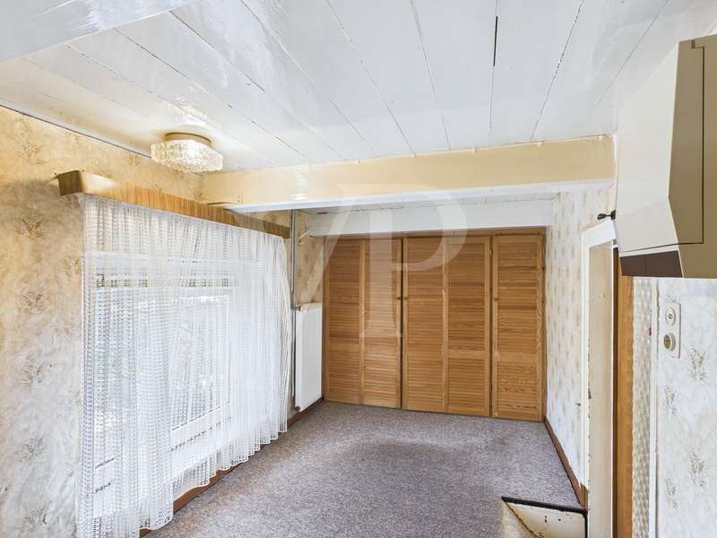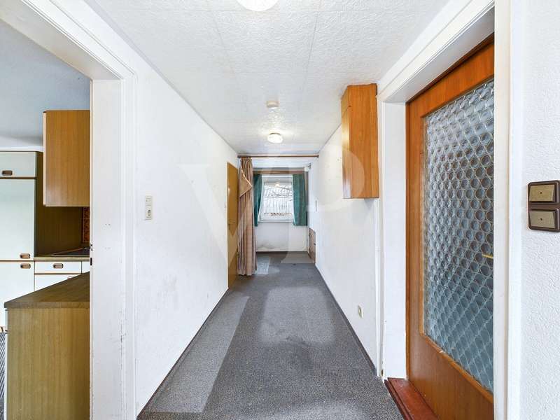 This semi-detached house from 1969 is in need of renovation and impresses with a living space of approx. 65 m² and an additional expansion reserve of around 40 m² in the attic. It offers a well thought-out room layout and plenty of potential for individual design ideas. The entrance area leads into a long hallway from which all rooms are easily accessible. On the right-hand side is the living room with enough space for a cozy interior. Adjacent to this is a smaller room that is ideal for use as a children's room, guest room or study. At the end of the hallway, on the left-hand side, is the spacious bedroom. On the opposite side, there is access to the semi-basement area - practical for additional storage space. Also to the left of the hallway is the kitchen, which is currently equipped with a fitted kitchen. From here, there is access to an adjoining utility room with separate outside access and sink. A skylight in the utility room provides access to the attic area, which is suitable as further usable space or as a reserve for conversion. At the end of this area is a separate shower room with WC. The attic is currently available as storage space, but offers further development potential. Outside there is a parking space, a garden shed and a massive stone barn. The plot of land comprises approx. 333 m². Particularly noteworthy is the rear garden area of around 200 m², which can be used as a potential building site. Overall, the property is in need of renovation - but offers the ideal basis for buyers who are skilled in their trade and want to realize their dream home according to their own ideas.