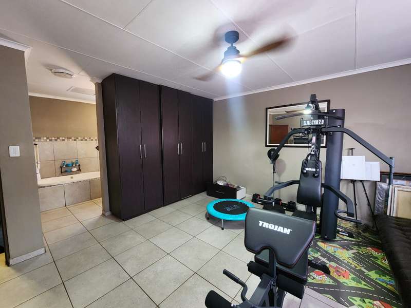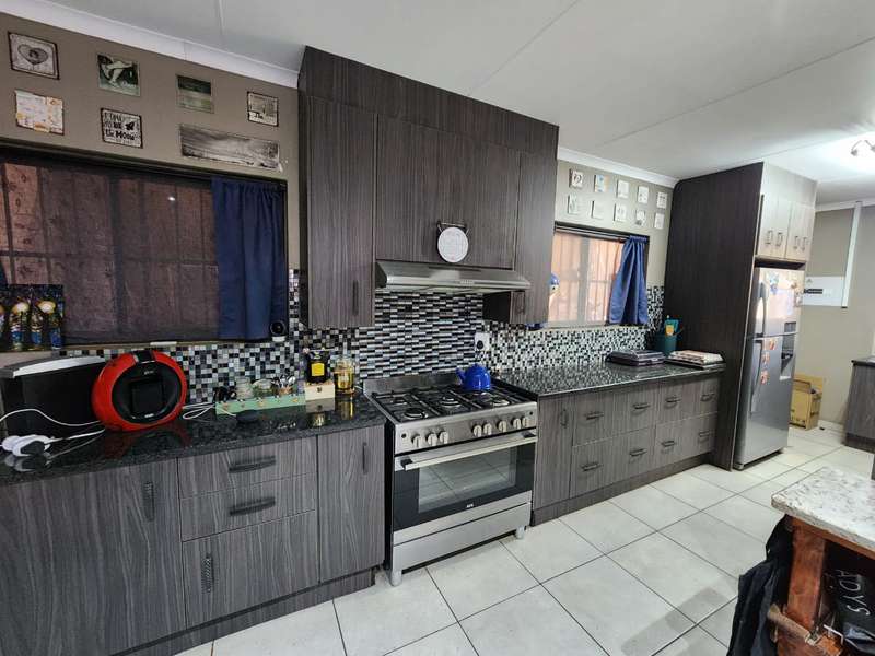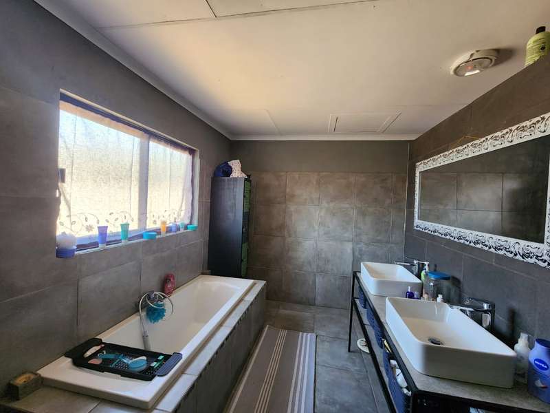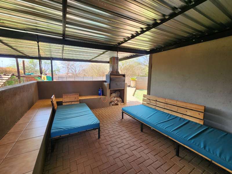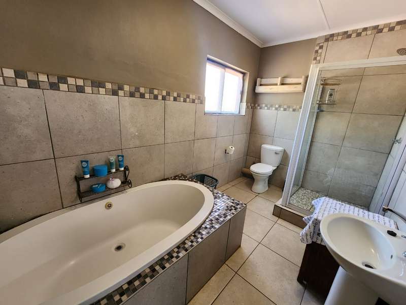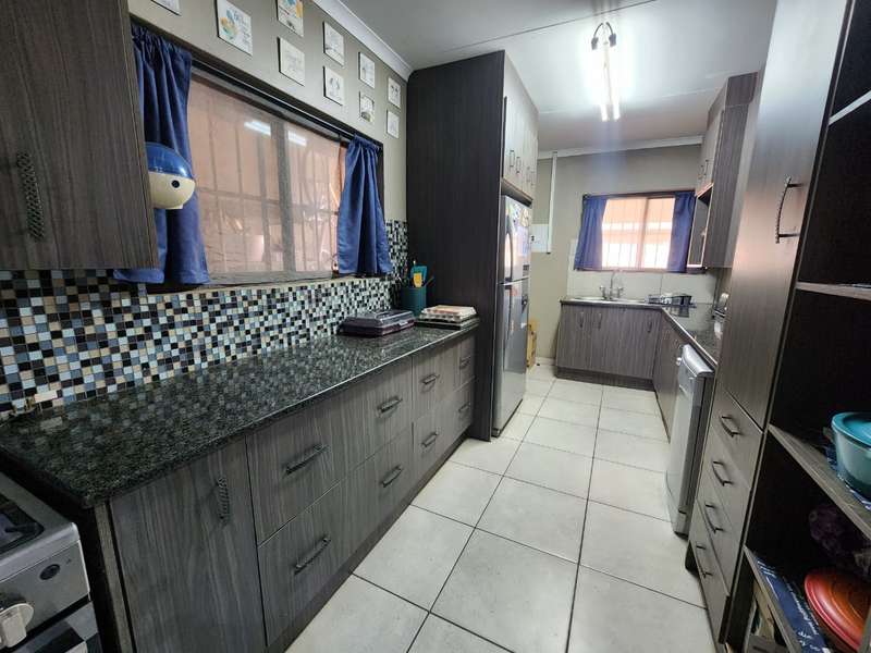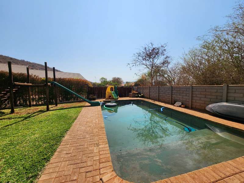 This house is situated in a quiet part of town close to the new Checkers Mall. A lovely two storey house with a pool and a 5KVA Sunsinc Solar System. This property consists of: 4 x spacious bedrooms 3 x bathrooms open plan lounge and kitchen laundry braai area 2 x carports 2 x shadenet carports 2 x watertanks with pump Perfect for just moving in