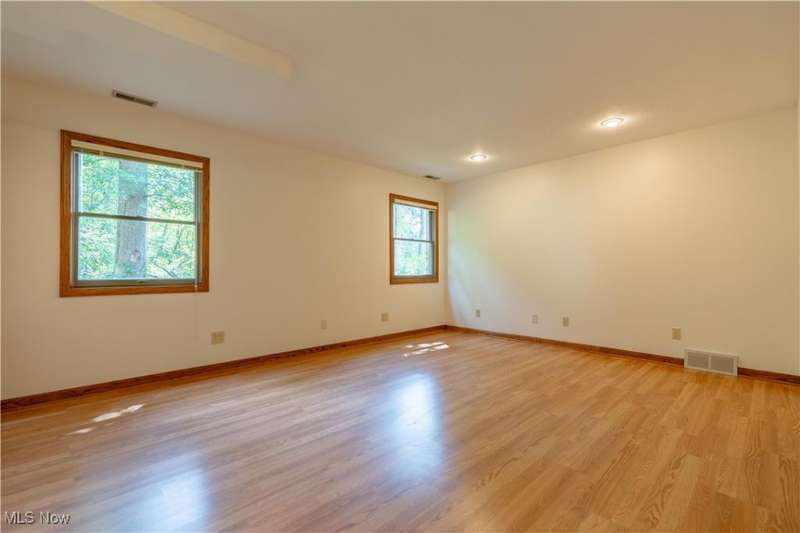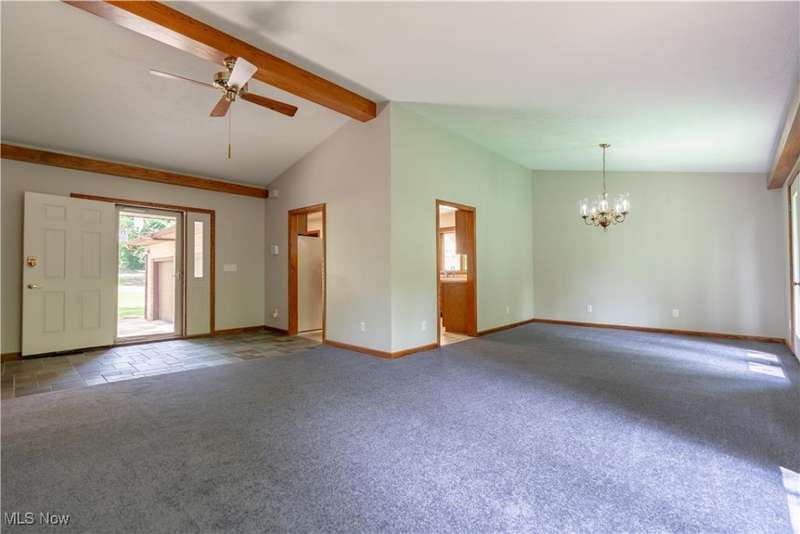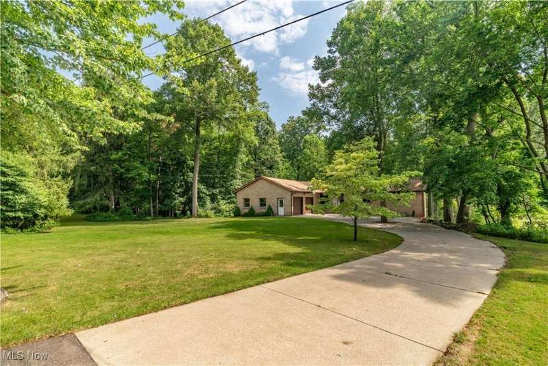 Tucked away on a serene, wooded lot just under 1.5 acres, this 5-bedroom, 3-full bath brick ranch is a rare find with space, charm, and updates throughout. The welcoming main floor features a spacious great room and formal dining area, an eat-in kitchen with classic oak cabinets and tiled floors, and three generous bedrooms?including a primary suite with a walk-in closet and private bath. A second full bath in the main hall ensures convenience for family and guests. Downstairs, the finished walk-out lower level offers even more living space with two additional bedrooms, a full bath, a cozy rec room complete with fireplace, a dedicated workshop, and a large laundry area. New carpet on the main level and attractive laminate flooring below add a fresh touch to this move-in-ready home. Step out onto the deck and enjoy stunning wooded views in complete privacy. The property includes a 2-car attached garage, newer roof (approx. 1 year), furnace and central air (approx. 5 years), and septic and well systems. Meticulously maintained and showing like new, this home delivers peace, comfort, and functionality in every corner. Don't miss your chance to own this one-of-a-kind retreat. Located in the Plain Local School District with close proximity to schools, shopping, Washington Square biking/walking trails, and Gervasi. Auditor indicates 3 beds, 2 full baths; but Seller states 5 beds, 3 full baths.