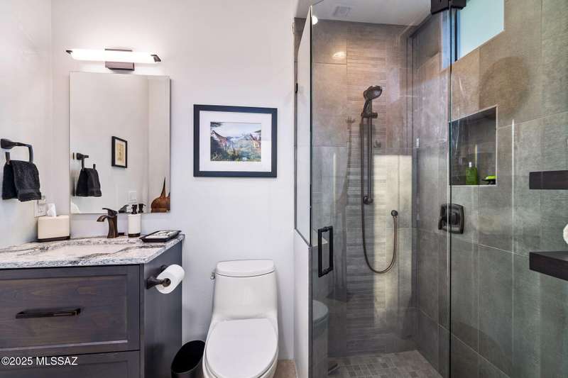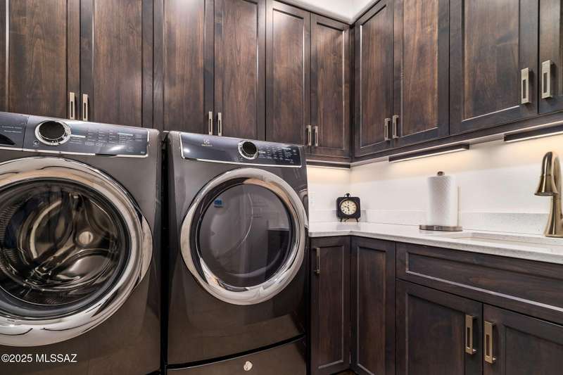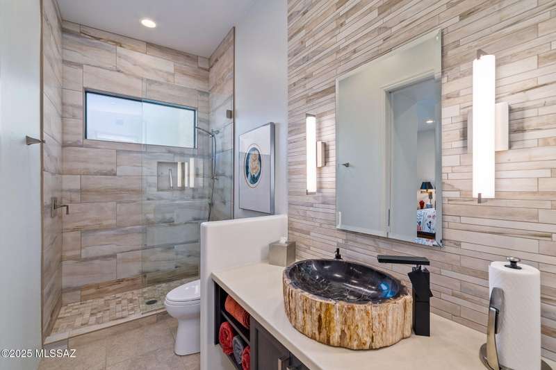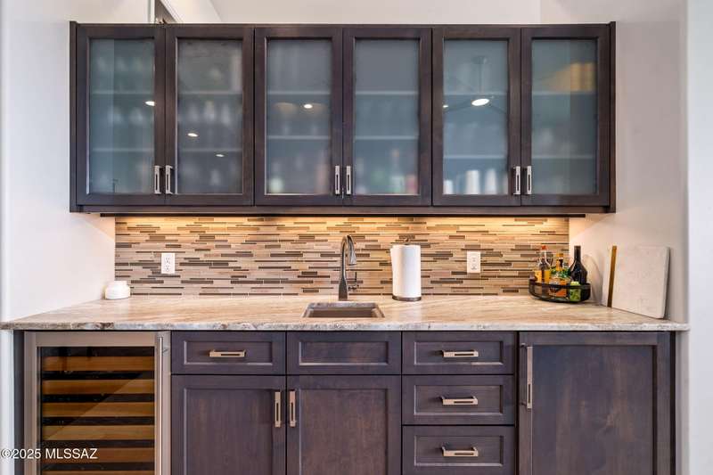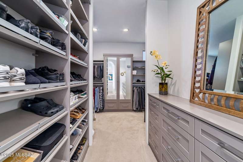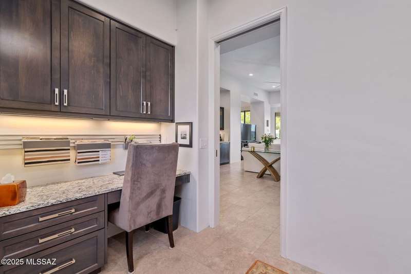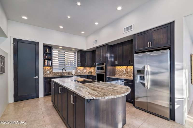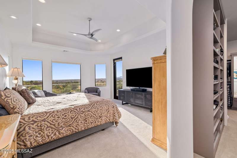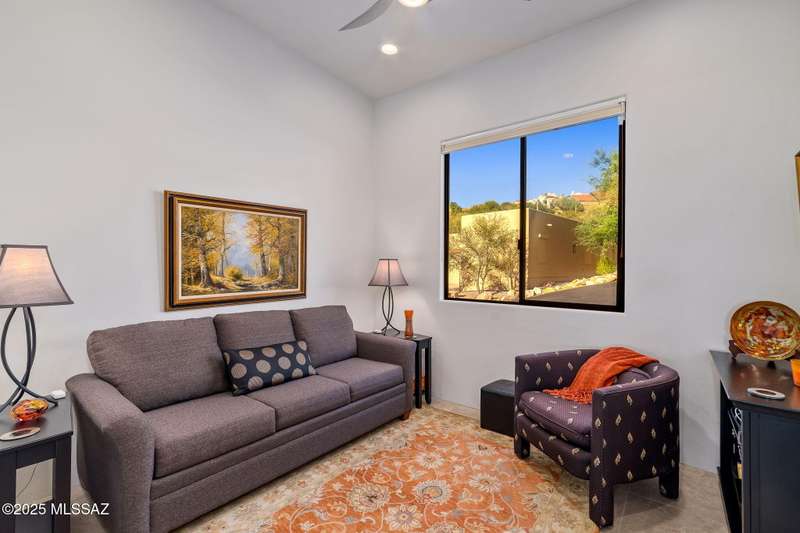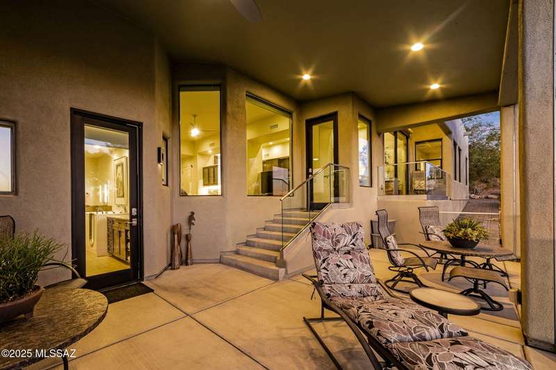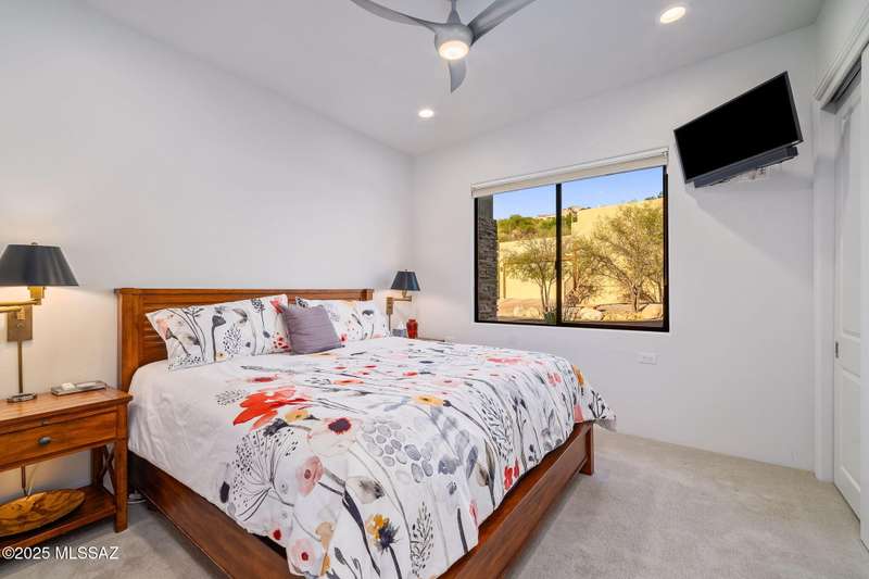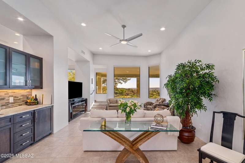 Gaze west from this 2018 rebuilt home perched along 7th & 8th fairways of Pusch Ridge Golf Course where sunsets unfold daily across a protected five-acre multi-saguaro wash. Enjoy a variety of birds & postcard view from private deck w/no extra yard to maintain. With no HOA & no homes pressed up on either side, this home has an uncommon sense of breathing room. Sleek, modern, thoughtful upgrades & broad patio spaces that feel like estate living w/o the upkeep. Relax in effortless resort-style living w/direct 5 minute golf-cart path access to the El Conquistador Resort pool, cafe, restaurants & bar. Grab morning coffee or wander back for dinner or cocktail in the evening. Step inside to light-filled open spaces w/soaring ceilings, sophisticated finishes & versatile plan that shifts easily..