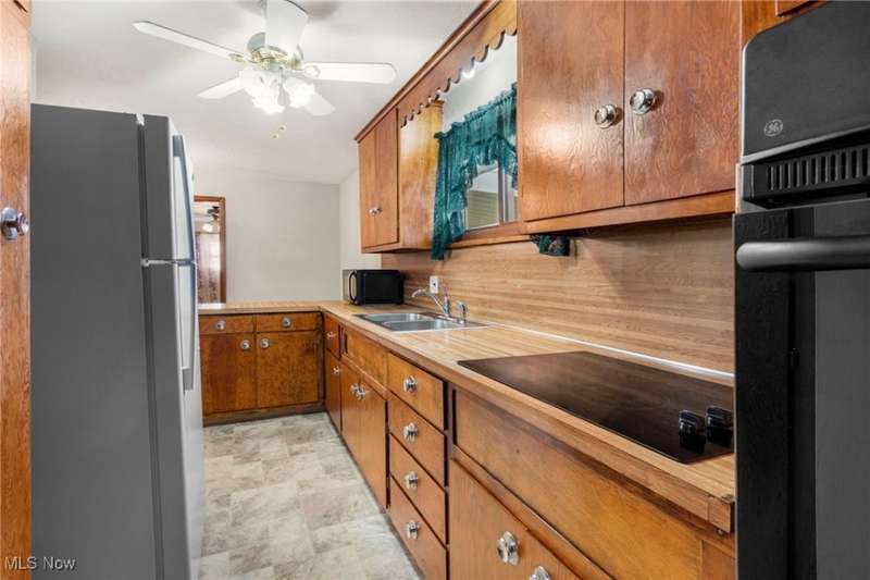 This welcoming home combines thoughtful updates with plenty of space inside and out. Step inside to a freshly painted interior featuring newer ceiling fans in every bedroom and a beautiful dining room chandelier that adds a touch of elegance. The kitchen, remodeled about ten years ago, offers generous cabinet space, a pantry, a broom closet, and a newer range - perfect for everyday cooking and entertaining. The bathroom includes a tub for relaxing, while the rec room adds extra versatility and comes complete with a pool table and equipment that stay. You'll also appreciate the glass block windows, and included freezer, and second gas stove,. Outdoors, enjoy a fenced backyard, breezeway, and a large covered front porch ideal for morning coffee or evening gatherings. Situated on a double lot with an oversized two-car garage, this home provides the perfect blend of charm, convenience, and space.